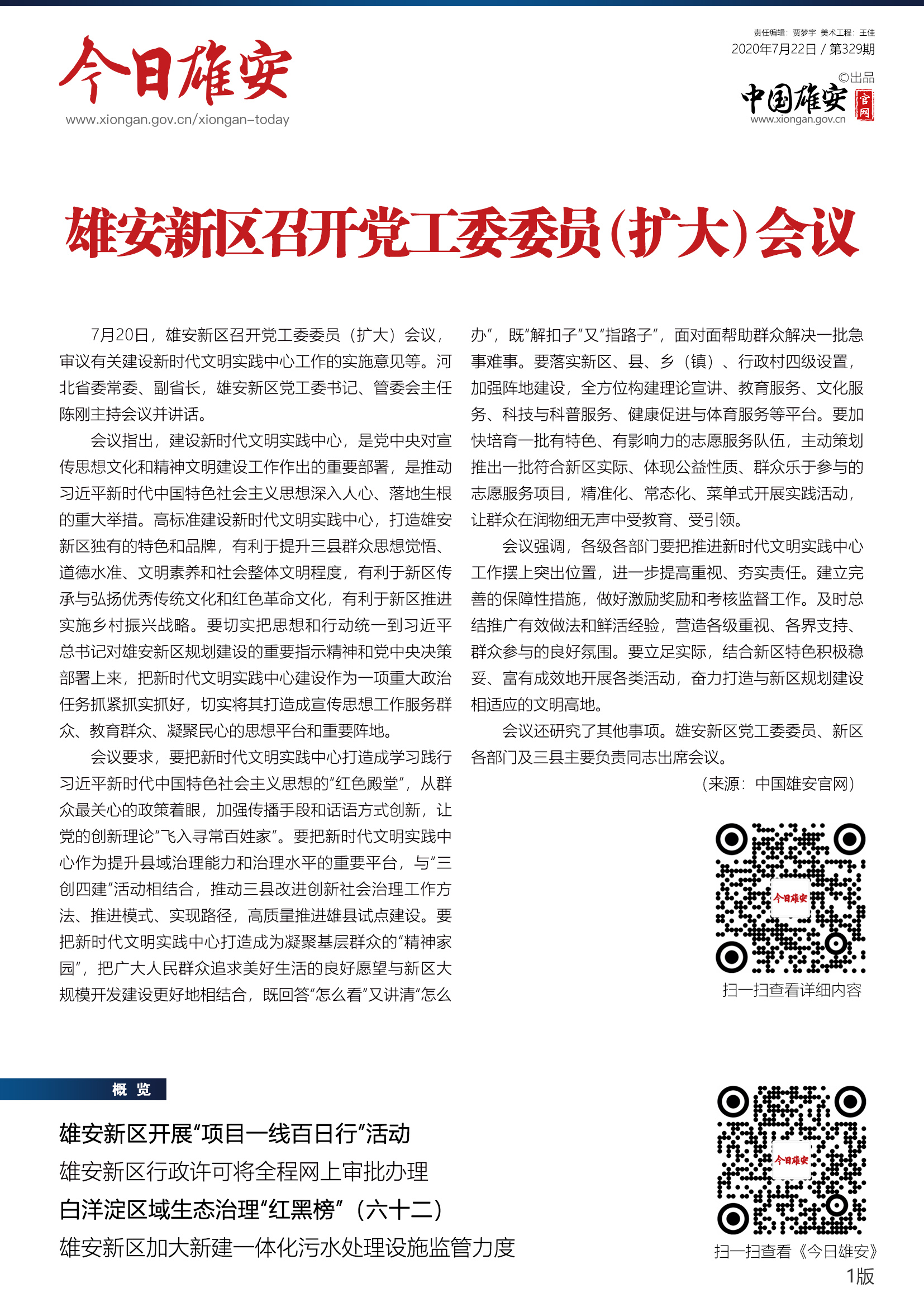 《今日雄安》 2020年7月22日 第329期