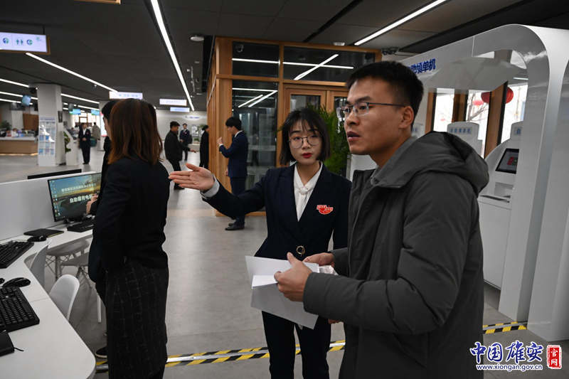 雄安新区政务服务中心工作人员引导企业代表办理相关业务(资料图)。中国雄安官网记者刘东尧 摄