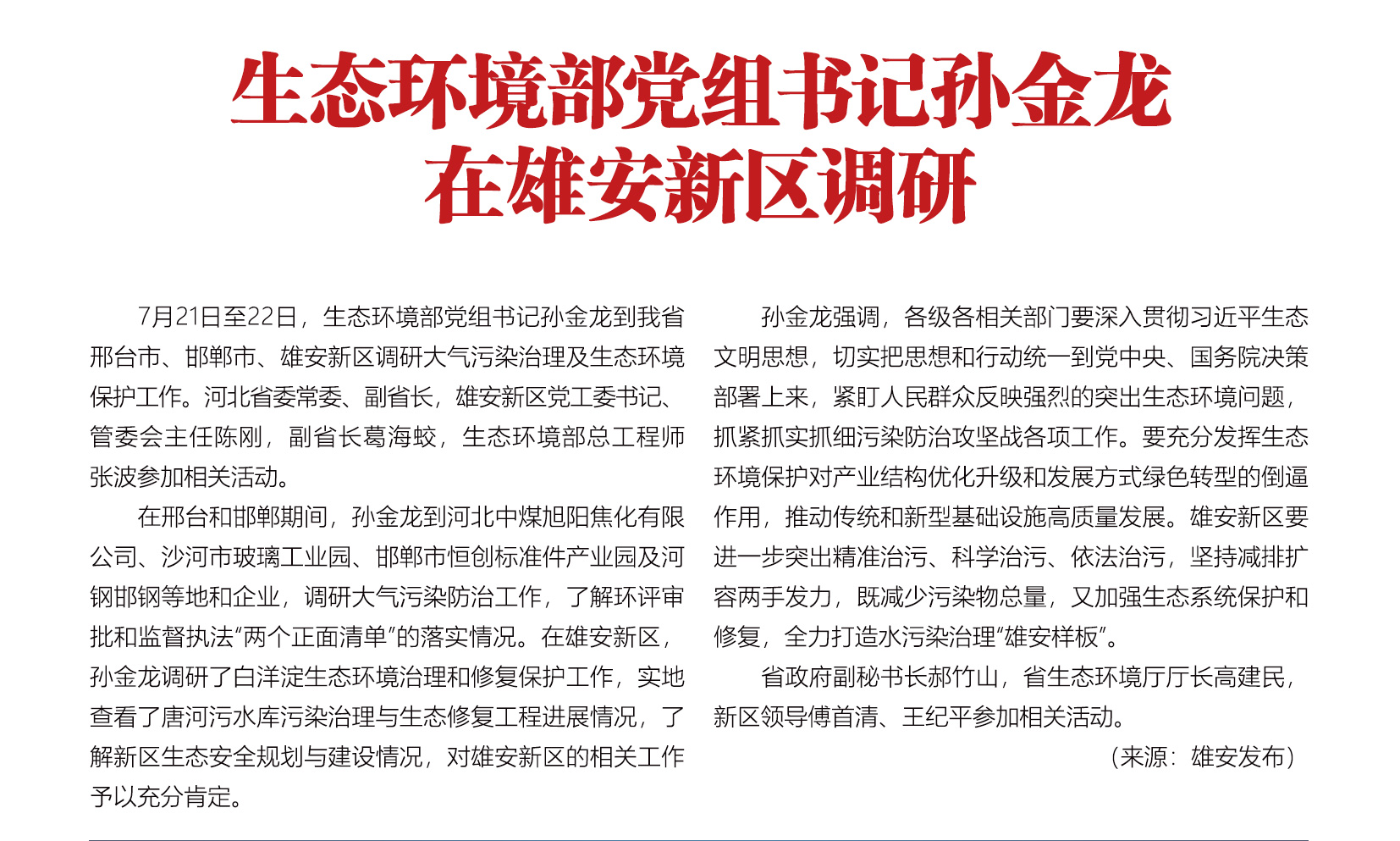 坚持减排扩容两手发力,打造水污染治理“雄安样板”。
