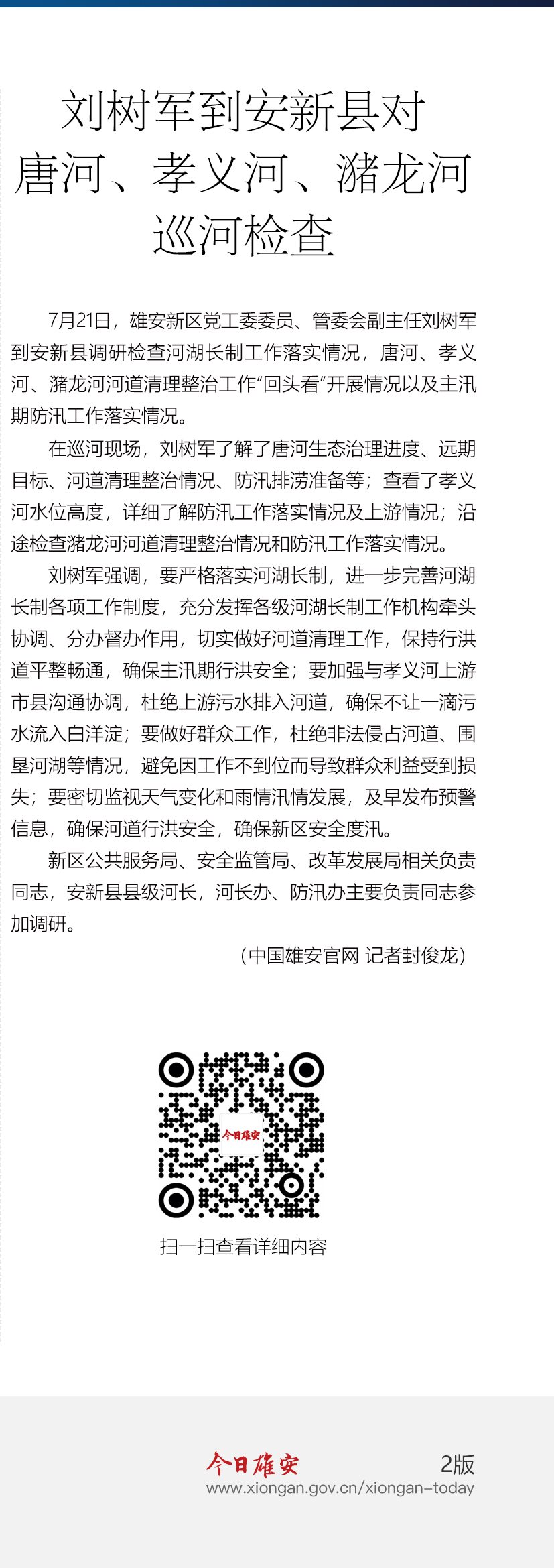 刘树军到安新县对唐河、孝义河、潴龙河巡河检查
