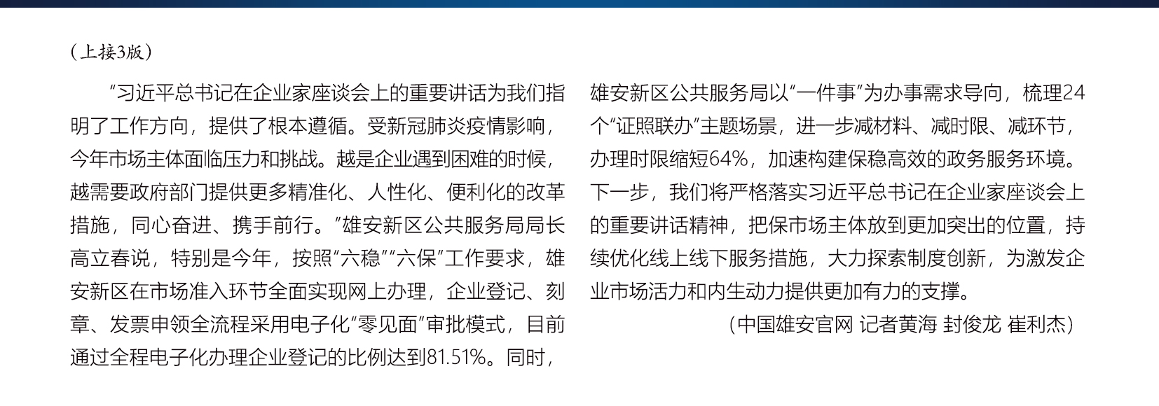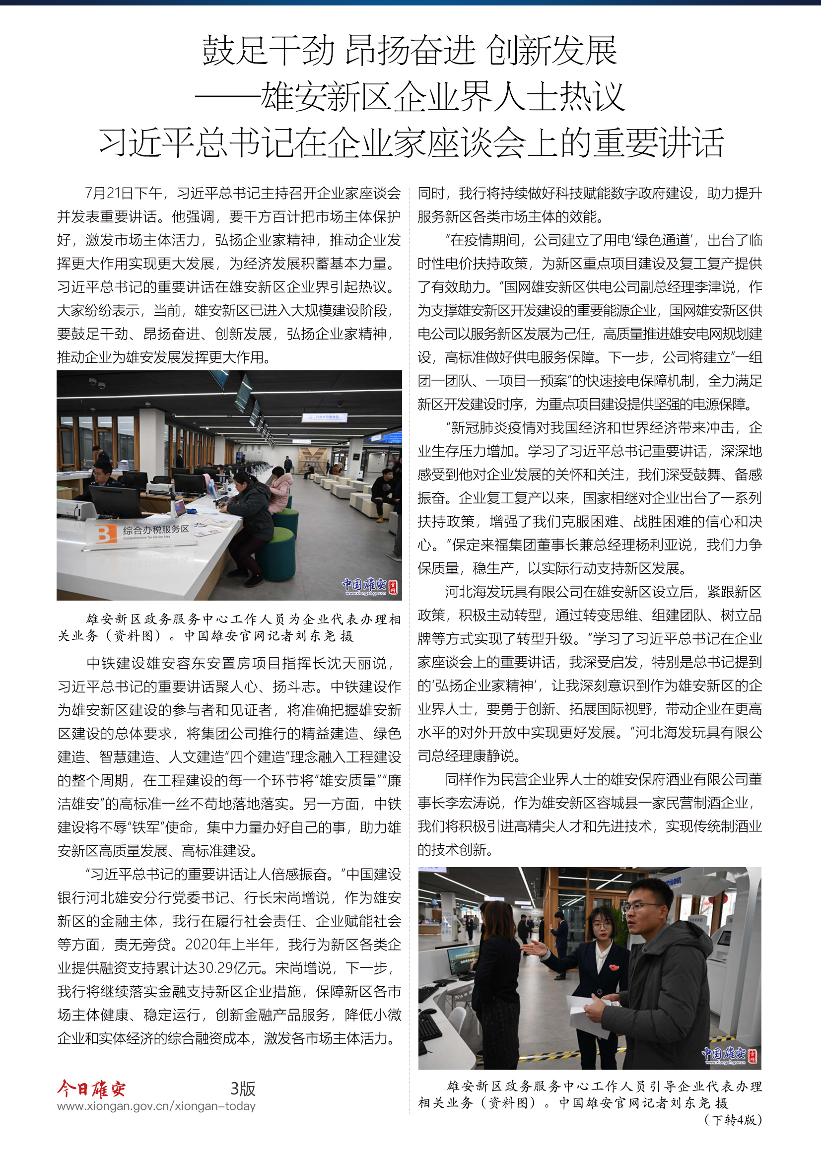 鼓足干劲 昂扬奋进 创新发展——雄安新区企业界人士热议习近平总书记在企业家座谈会上的重要讲话
