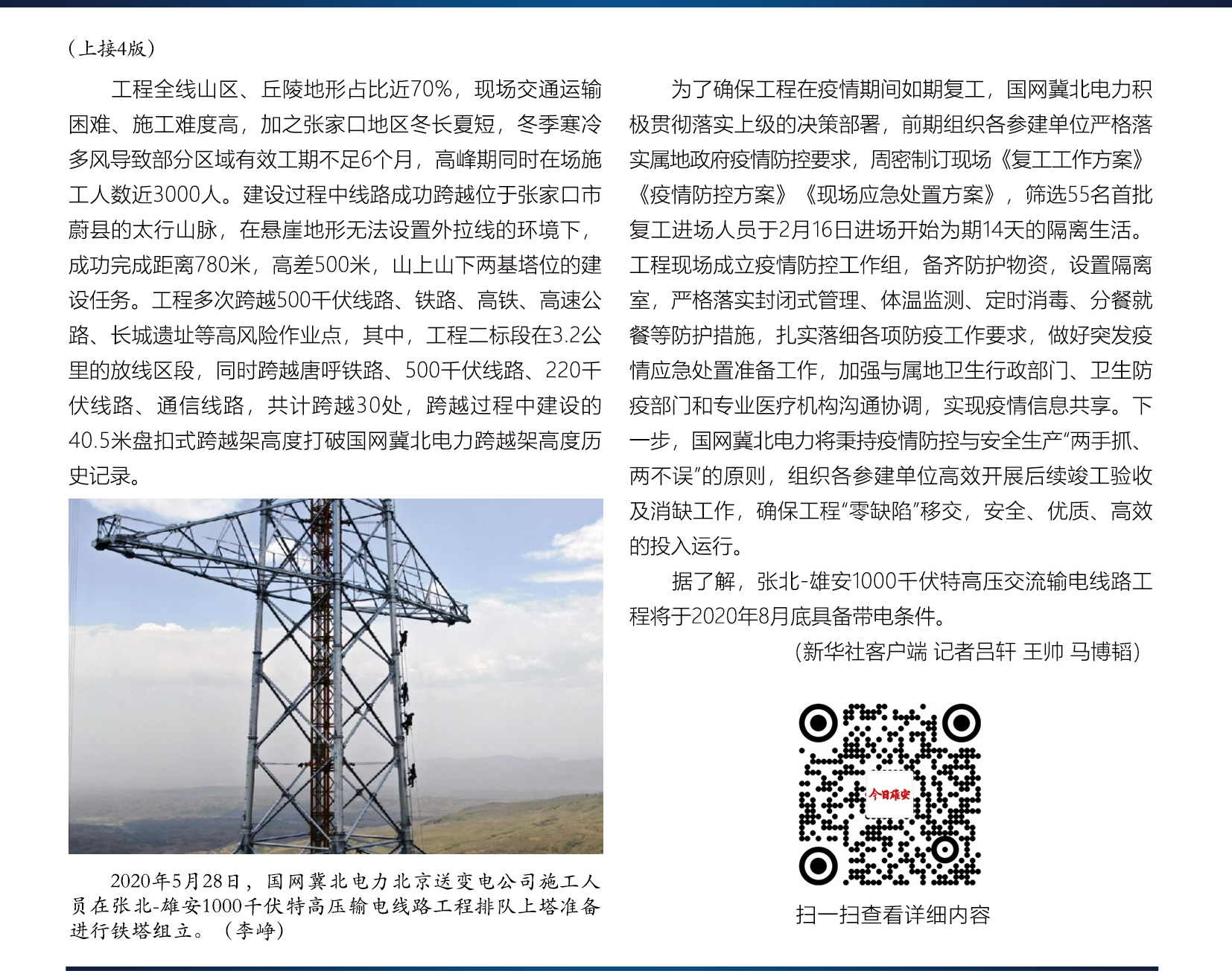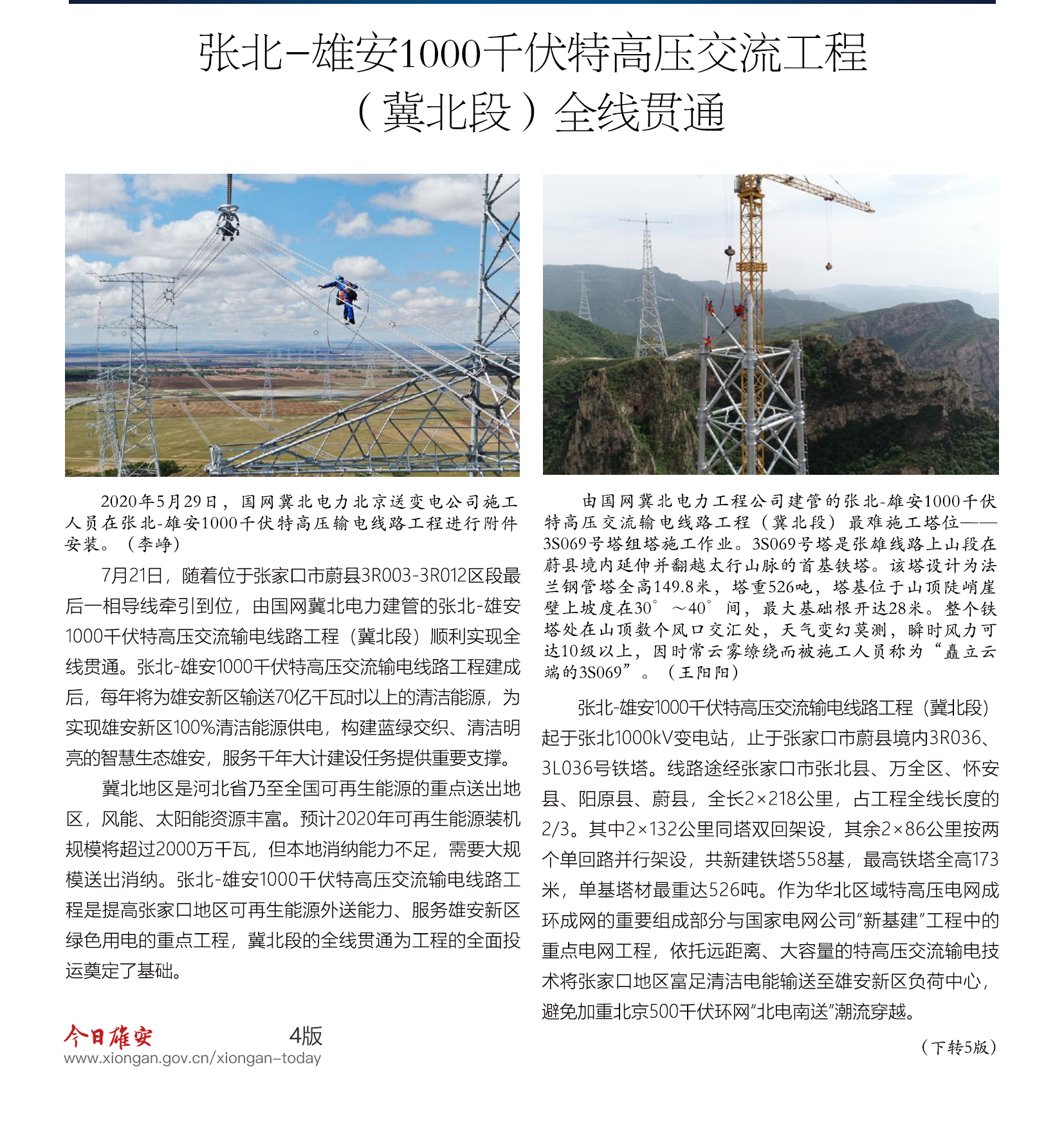 张北-雄安1000千伏特高压交流工程(冀北段)全线贯通