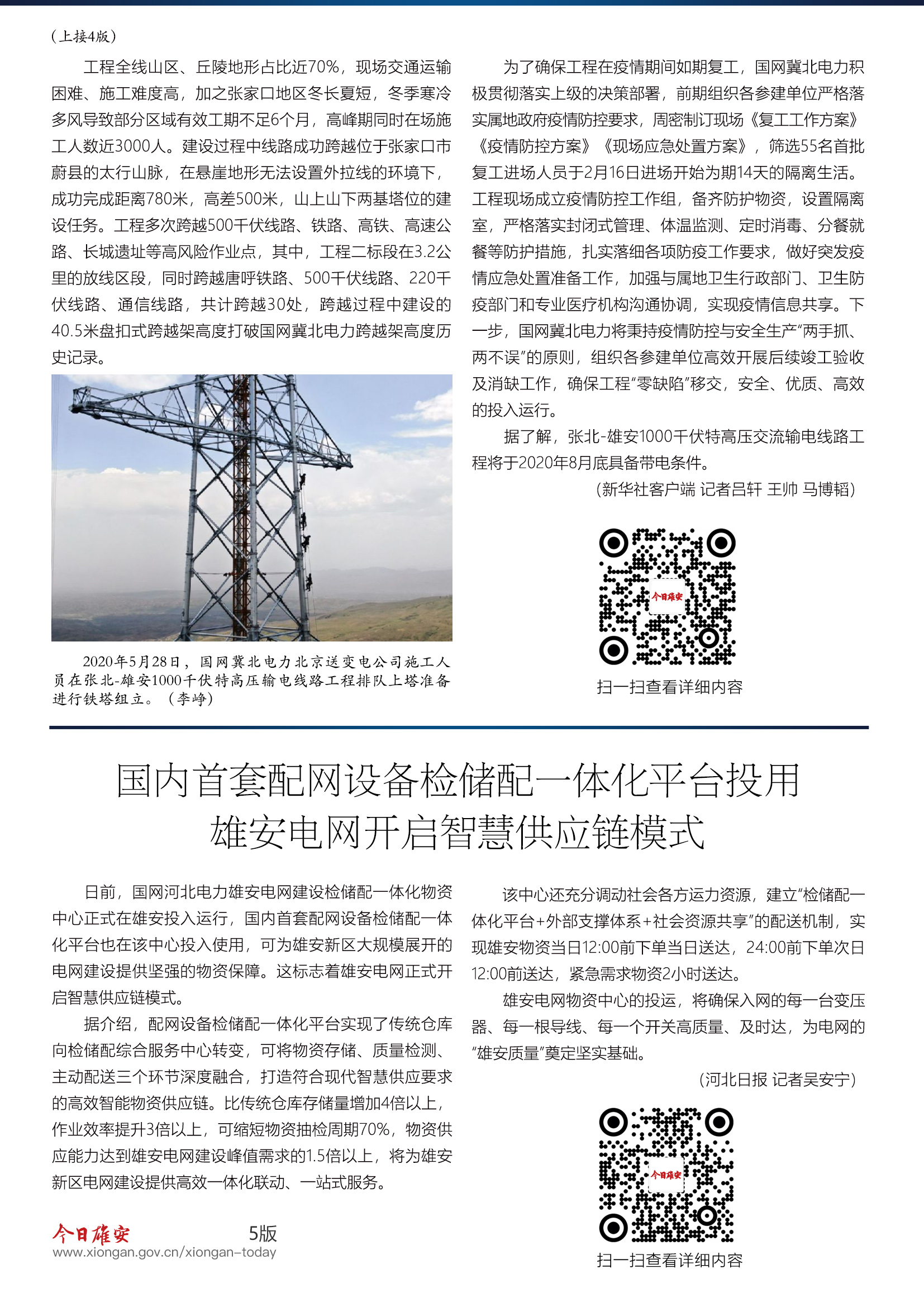 雄安电网物资中心的投运,将确保入网的每一台变压器、每一根导线、每一个开关高质量、及时达,为电网的“雄安质量”奠定坚实基础。