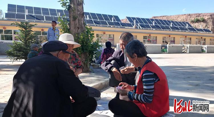 尚义县下马圈乡幸福互助院内,老人们正在树下乘凉、打牌。河北日报记者李艳红 摄
