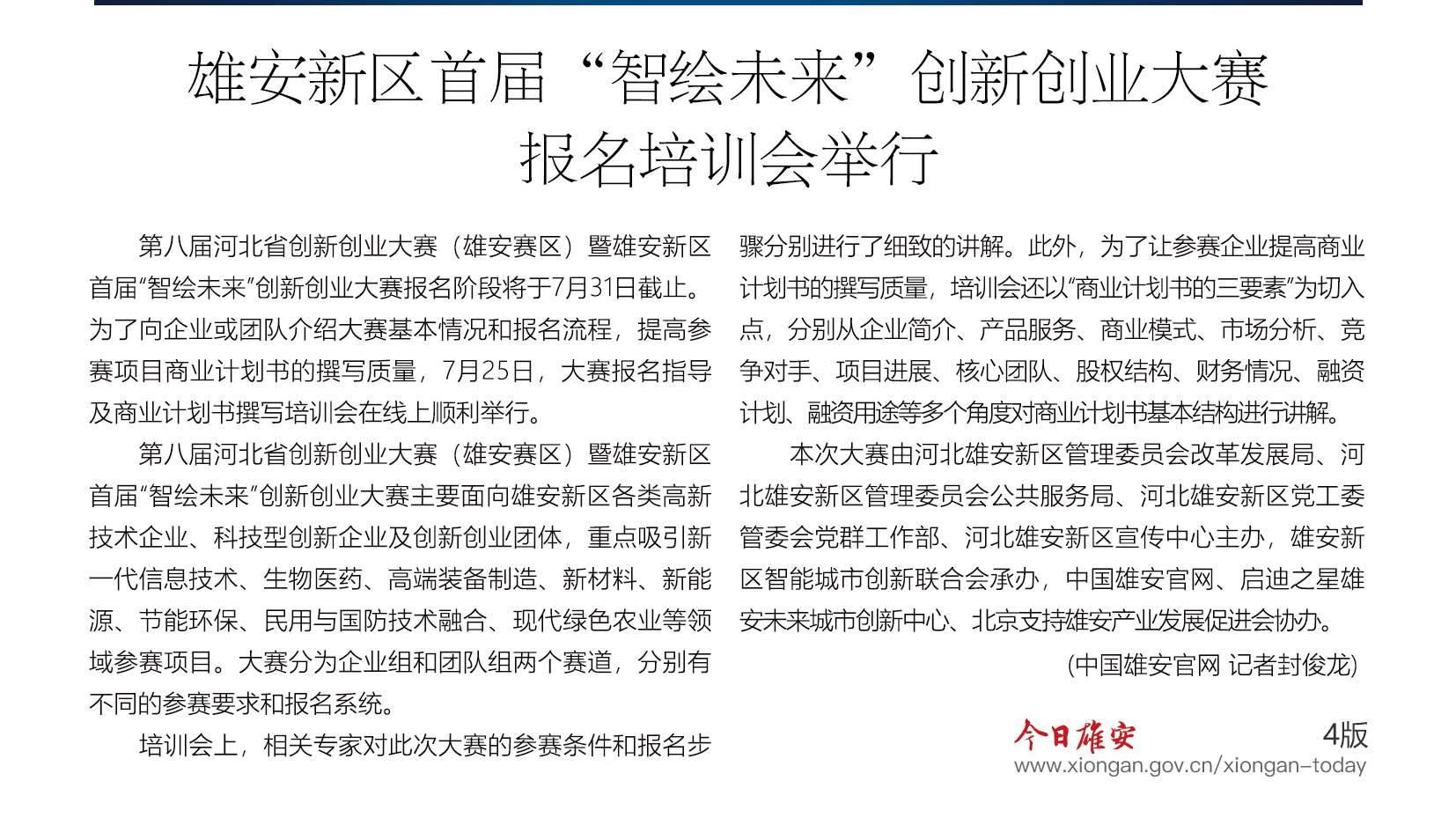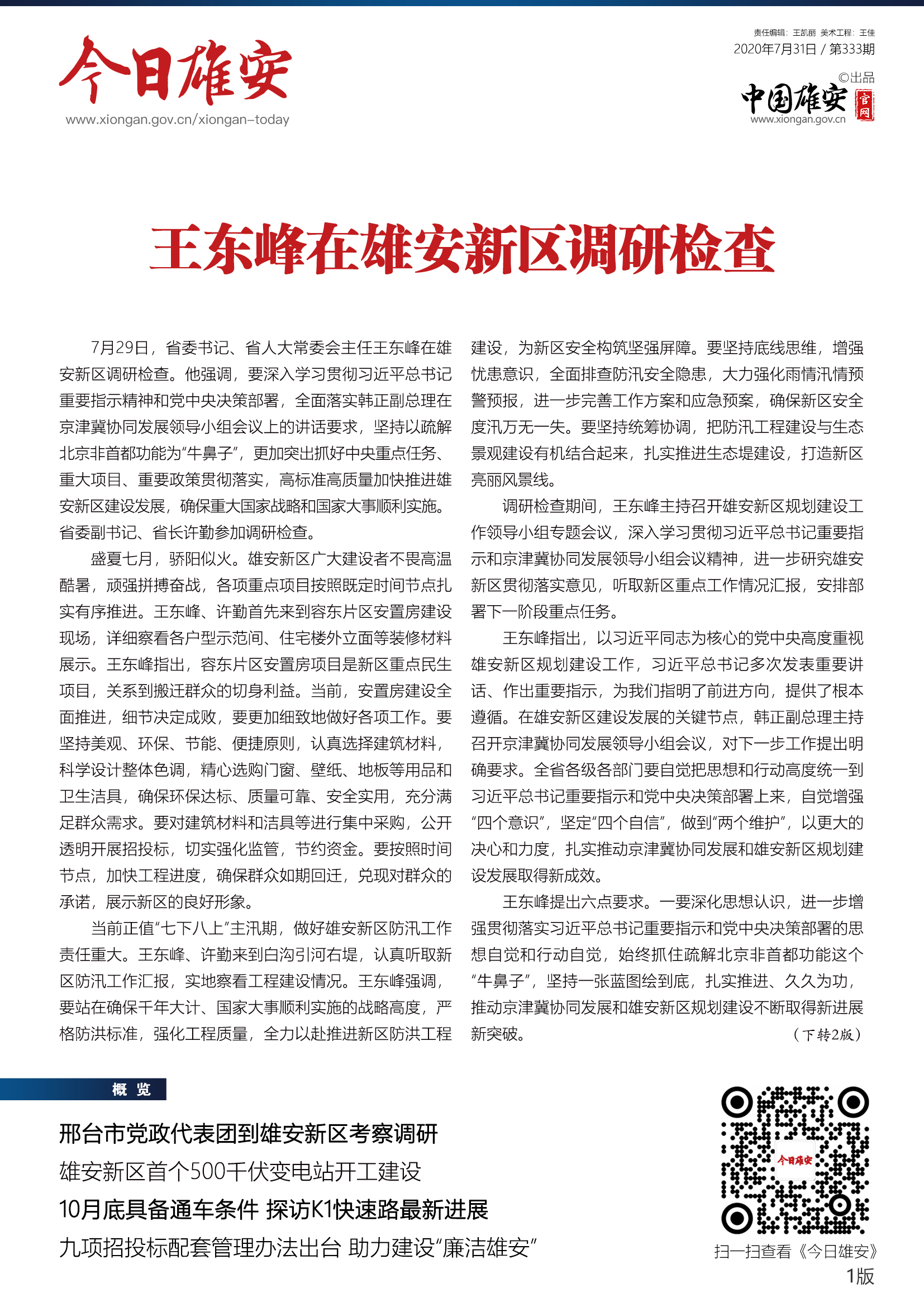 《今日雄安》 2020年7月31日 第333期