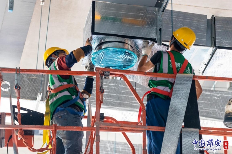 工人在雄安商务服务中心会展中心进行设备安装。中国雄安官网记者牛思佳 摄