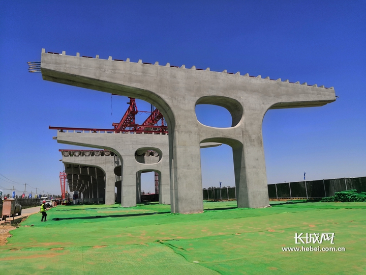 京雄高速SG6标全长7.4公里,是京雄高速唯一一个工程都在雄安新区内施工的标段,也是京雄高速唯一使用了花瓶墩造型的标段。