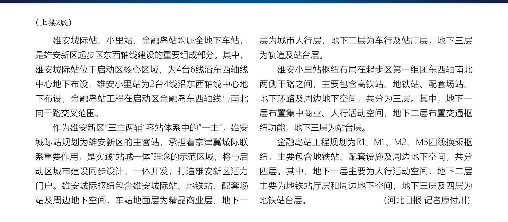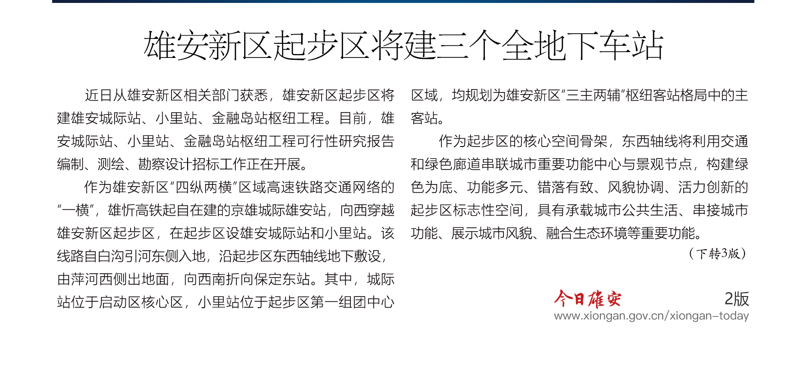 雄安新区起步区将建三个全地下车站