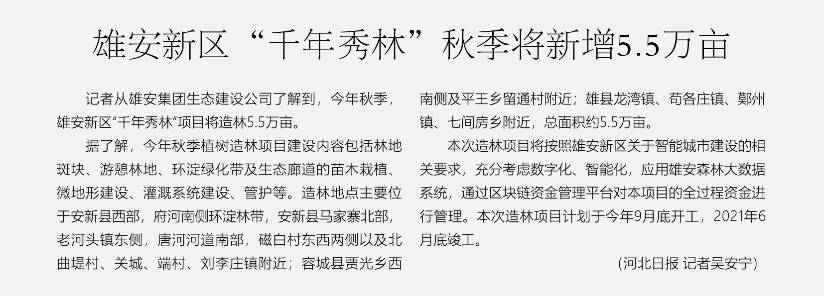 雄安新区“千年秀林”秋季将新增5.5万亩