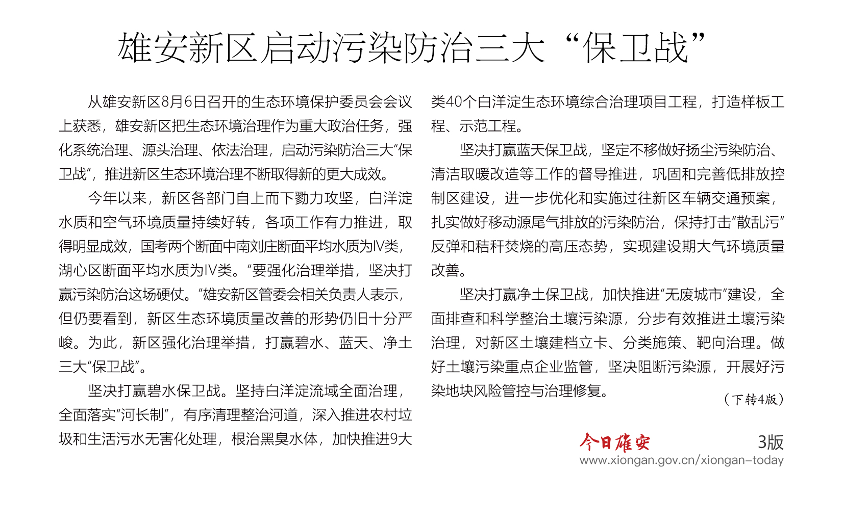 雄安新区启动污染防治三大“保卫战”