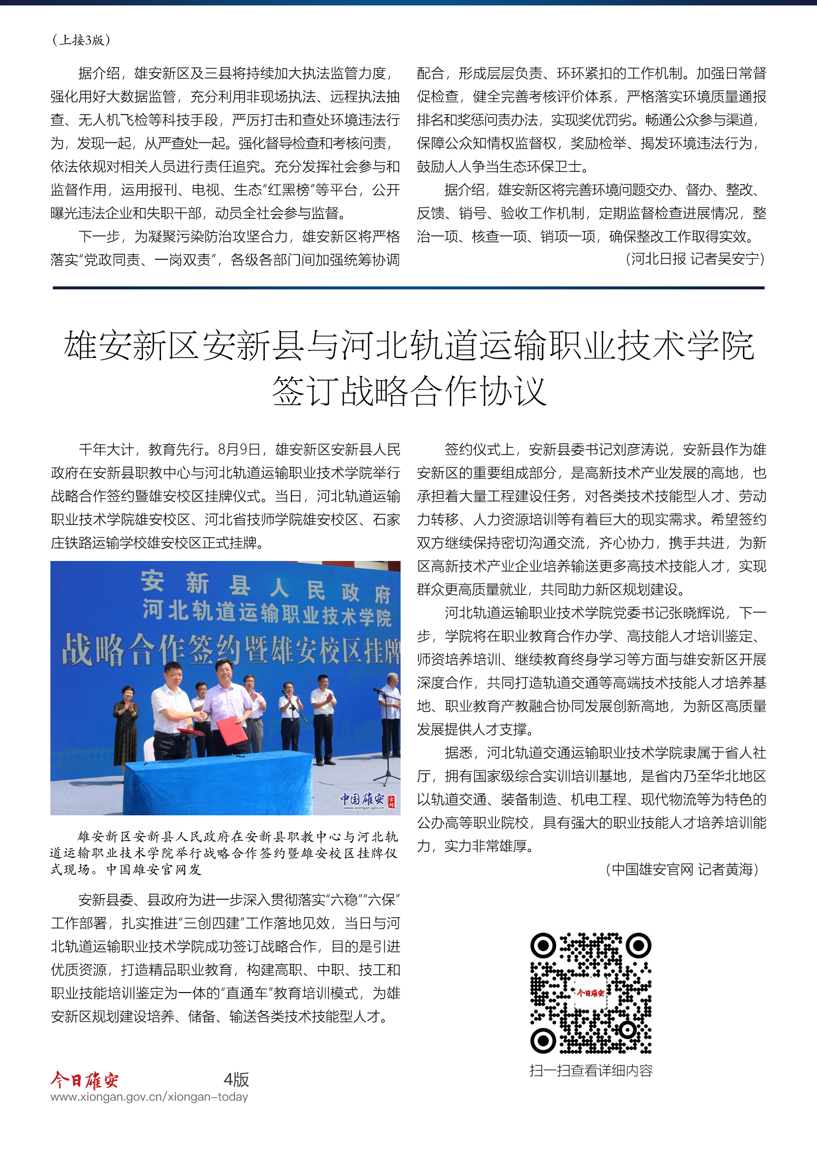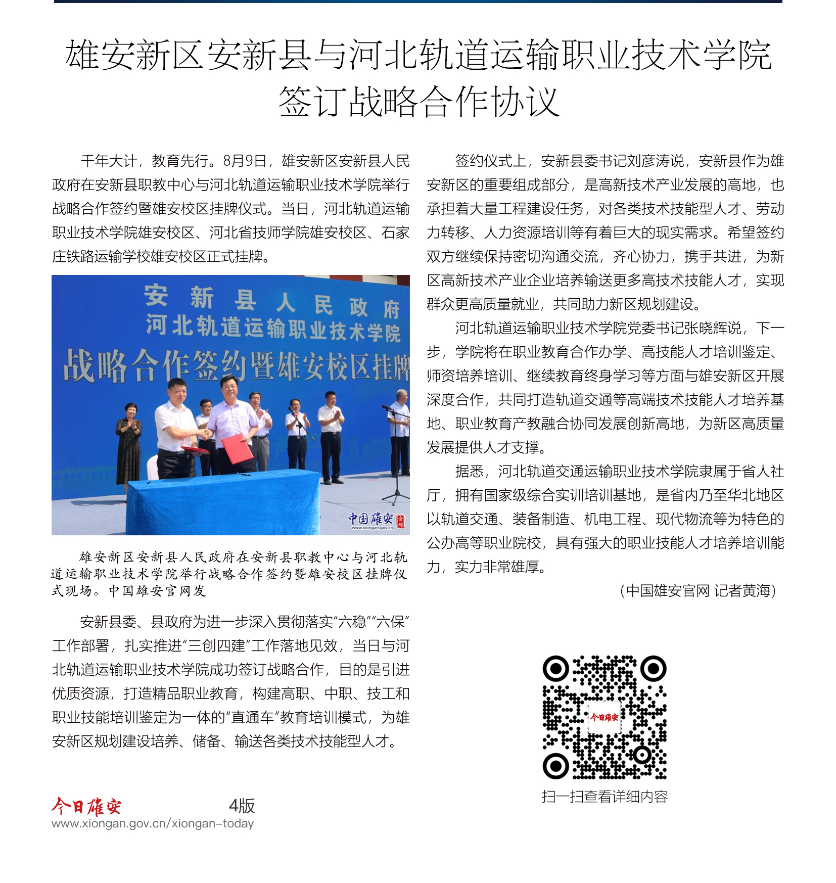 雄安新区安新县与河北轨道运输职业技术学院签订战略合作协议