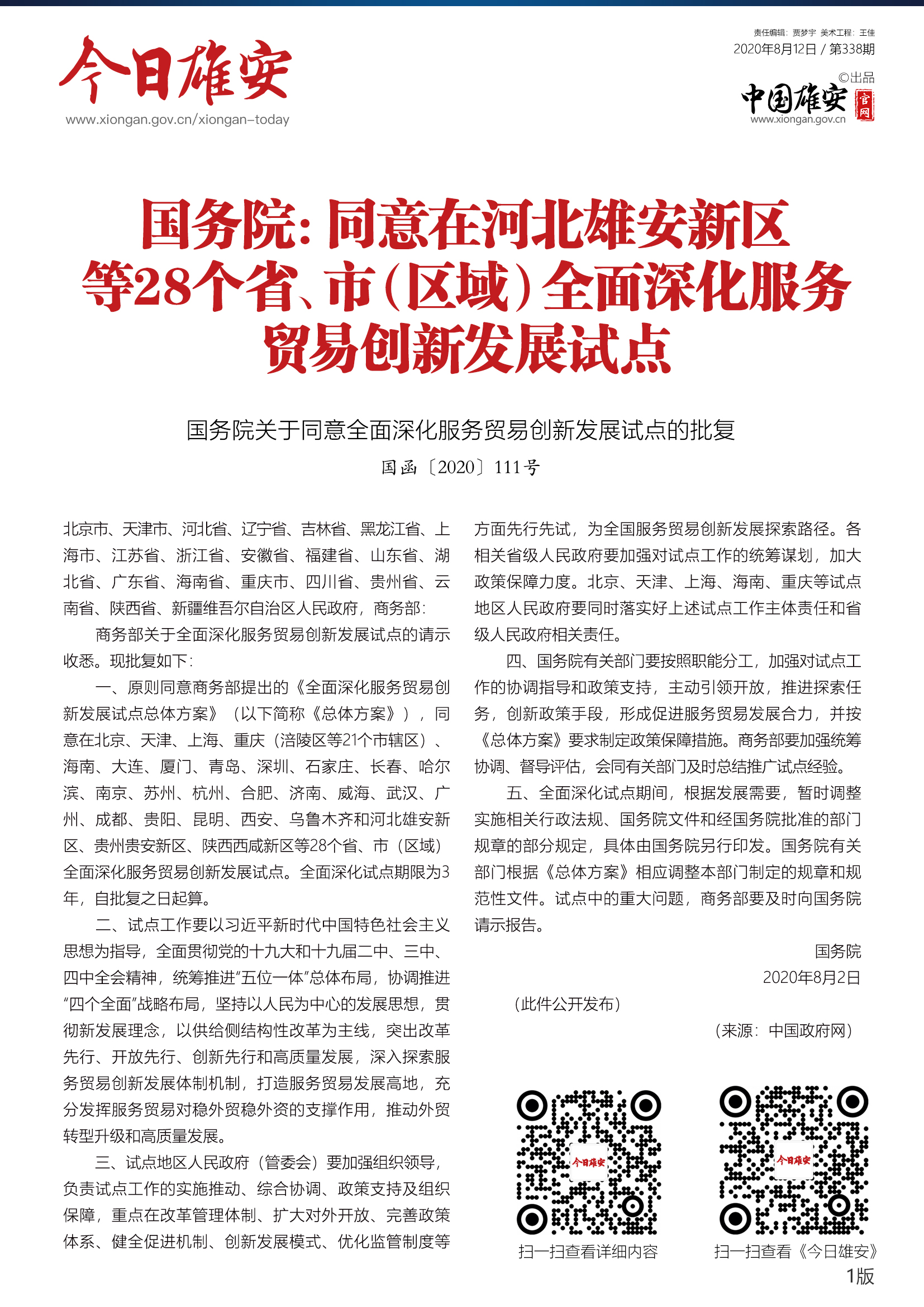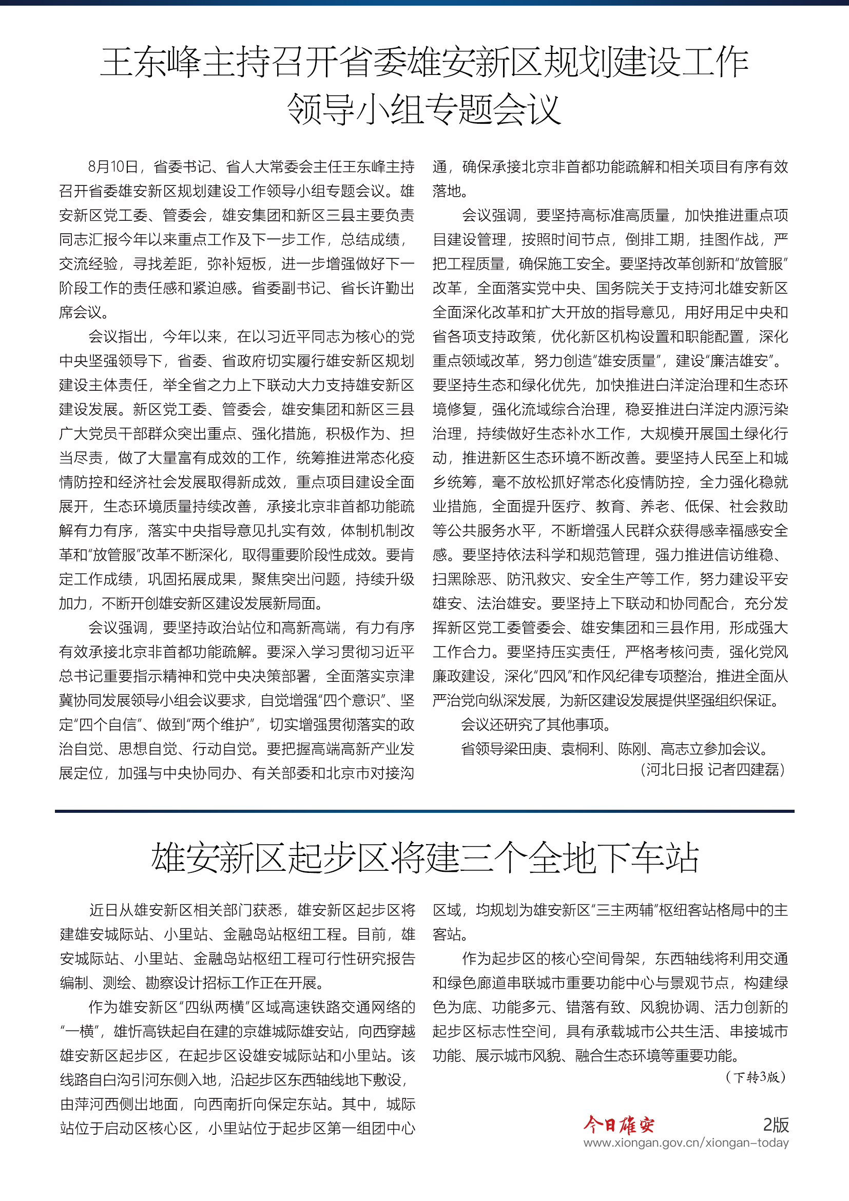 《今日雄安》 2020年8月12日 第338期