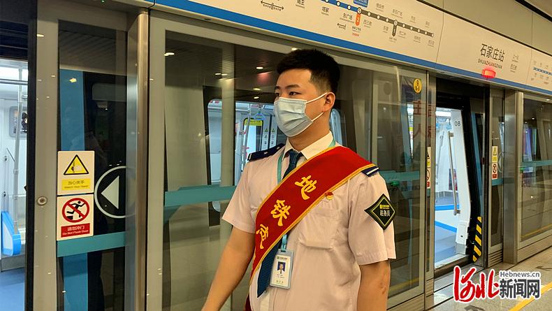 8月4日,石家庄地铁3号线的石家庄站,远处传来地铁列车的轰鸣声。身着一身笔挺制服的站务员马建面对屏蔽门的方向笔直站好,眼见列车呼啸而至,马建快速转身,待车停稳、开门,向着列车左右瞭望,观察屏蔽门有无异常……