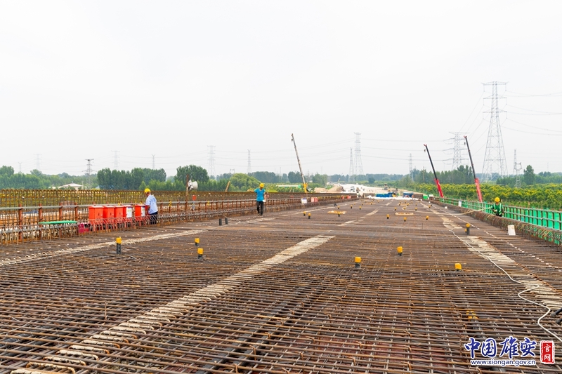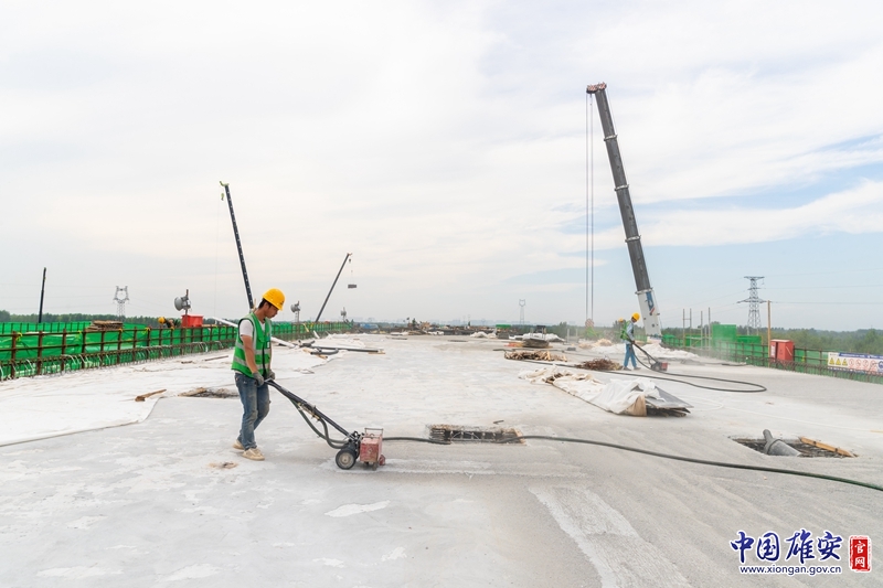 中国雄安官网8月14日电(记者黄海)“这一块区域可以了,这一块还需要打磨。”近日,在位于雄安新区雄县昝岗组团南部的中电建路桥集团有限公司K1快速路(一期)项目一标段施工现场,K1快速路(一期)项目一标段总工程师吕鹏博正在对项目进行日常巡查,并指挥工人进行桥面混凝土打磨作业。