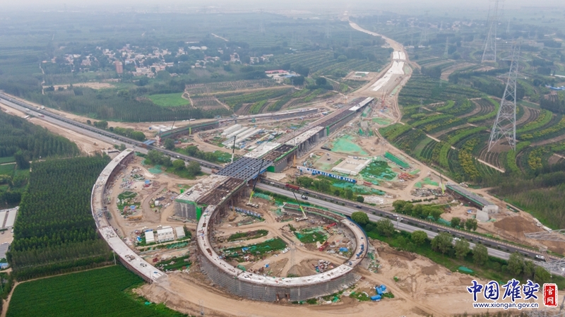 航拍K1快速路(一期)项目一标段项目荣乌互通区施工现场。中国雄安官网记者牛思佳 摄