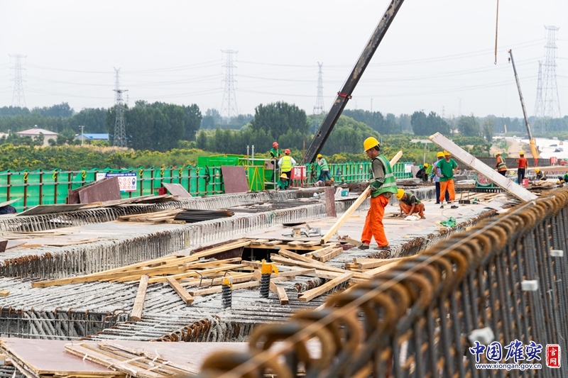 虽已立秋,但是天气依然十分炎热,雄安的建设者们奋战在施工一线,汗水在他们的衣服上留下了深深的印记。记者跟随项目有关负责人来到项目的荣乌互通区、主线隧道段等重点施工现场进行探访。