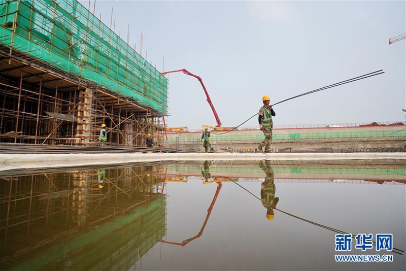工人在雄安新区容东片区安置房及配套设施项目建设现场搬运建材(8月11日摄)。记者从河北雄安新区管委会了解到,雄安新区2020年谋划提出百余个重点建设项目,截至7月底,近70个项目已主体开工或配套辅助设施工程开工。新华社记者牟宇 摄
