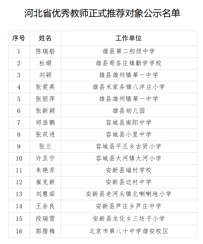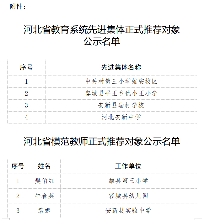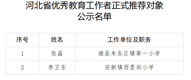 根据河北省人力资源社会保障厅、河北省教育厅《关于做好2020年河北省教育系统先进集体和先进个人评选表彰工作的通知》(冀人社字〔2020〕236号)要求,经省级初审,确定了正式推荐对象。现对正式推荐对象名单予以公示,公示时间为2020年8月17日-8月21日。
