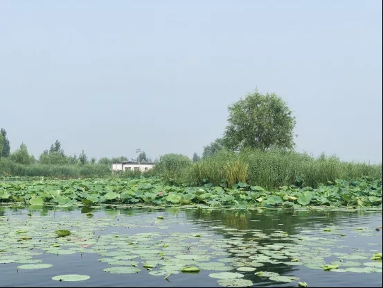 伴着船夫洋洋盈耳的歌声,踏着一路碧波荡漾,记者来到了素有“华北明珠”之称的白洋淀。恰逢雨后初晴,天空万里无云,湖面水波不兴,天水一色的背景板上俨然一幅芦苇婆娑、荷花绰约、水鸟啁啾、水村掩映的生态美景,真可谓是“波摇苇荡迷人眼,风递荷香醉客舟”。