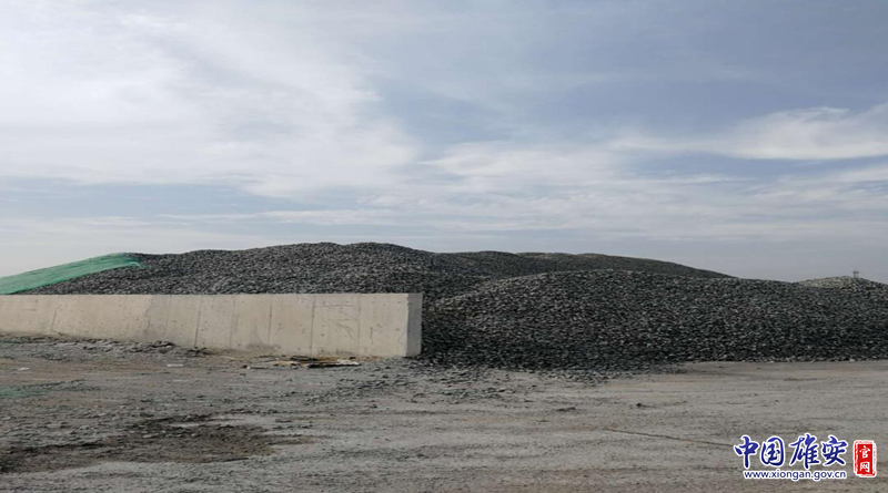 中铁上海工程局集团第四工程有限公司京雄城际铁路五标项目部二分部施工区物料未采取防尘措施。雄安新区雄县生态环境局供图