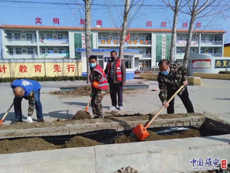 图为西里街村党组织书记、村委会主任带领党员和白洋淀志愿者义务种植花草。中国雄安官网发