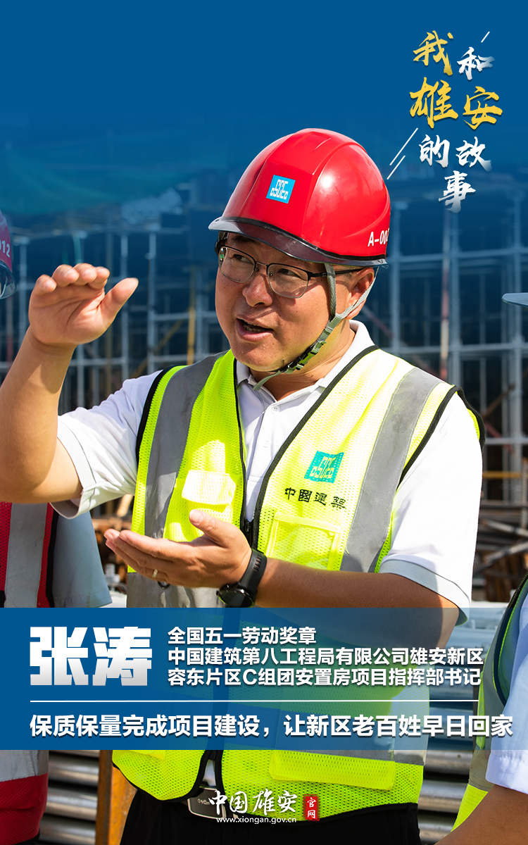 千年大计、国家大事。张涛觉得能够参与雄安新区建设是每一位建筑人的梦想和荣耀。“我作为全国五一劳动奖章的获得者,一定会以身作则,把劳动者的奋斗精神带到雄安来,带领我的团队为雄安的建设作出应有的贡献。我们项目团队一定能够保质保量完成好容东片区C组团安置房项目,让新区老百姓早日回家。”
