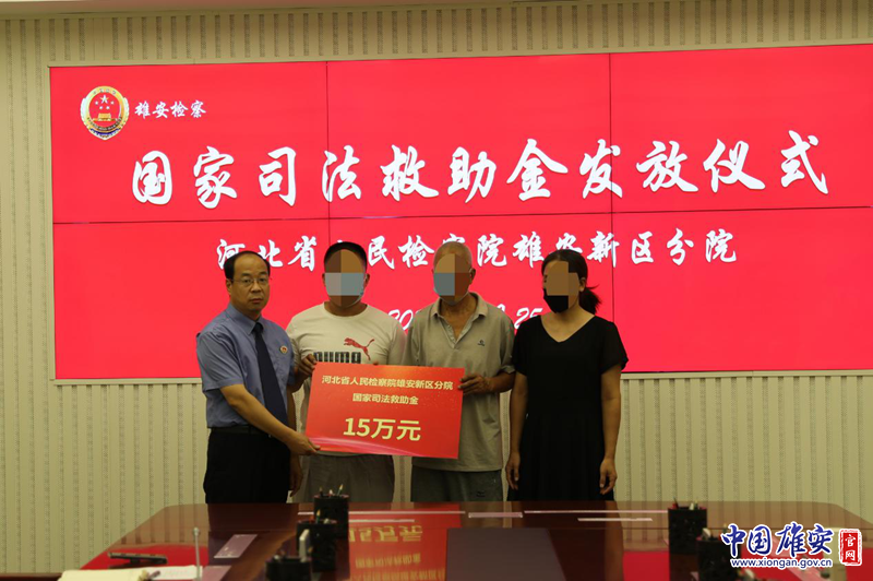 8月25日下午,河北省人民检察院雄安新区分院举行国家司法救助金发放仪式,为一起故意杀人案的两名受害人一次性发放救助金共15万元。该案是河北省人民检察院雄安新区分院成立以来,新区检察机关办理的首例国家司法救助案件。
