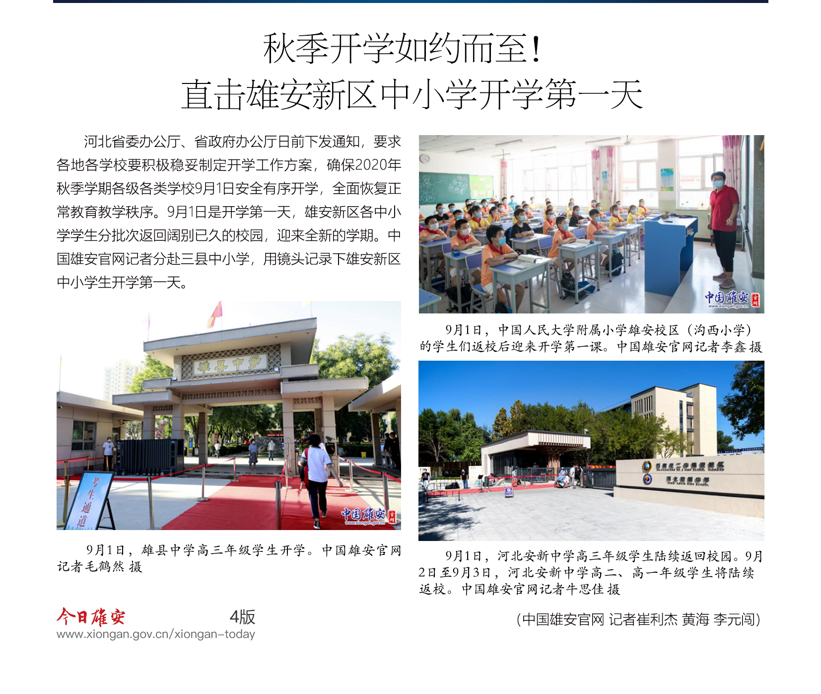 中国雄安官网记者分赴三县中小学,用镜头记录下雄安新区中小学生开学第一天。