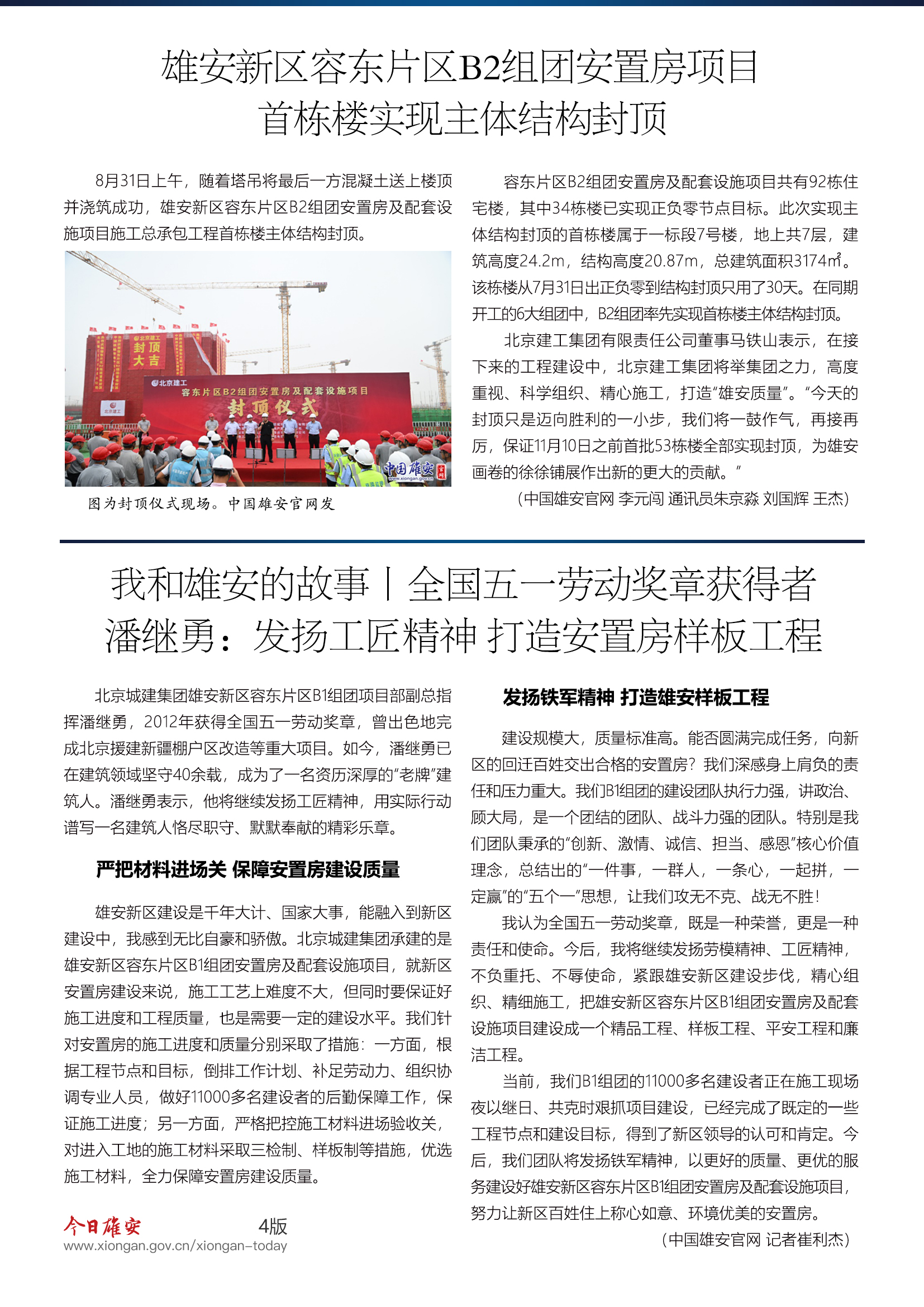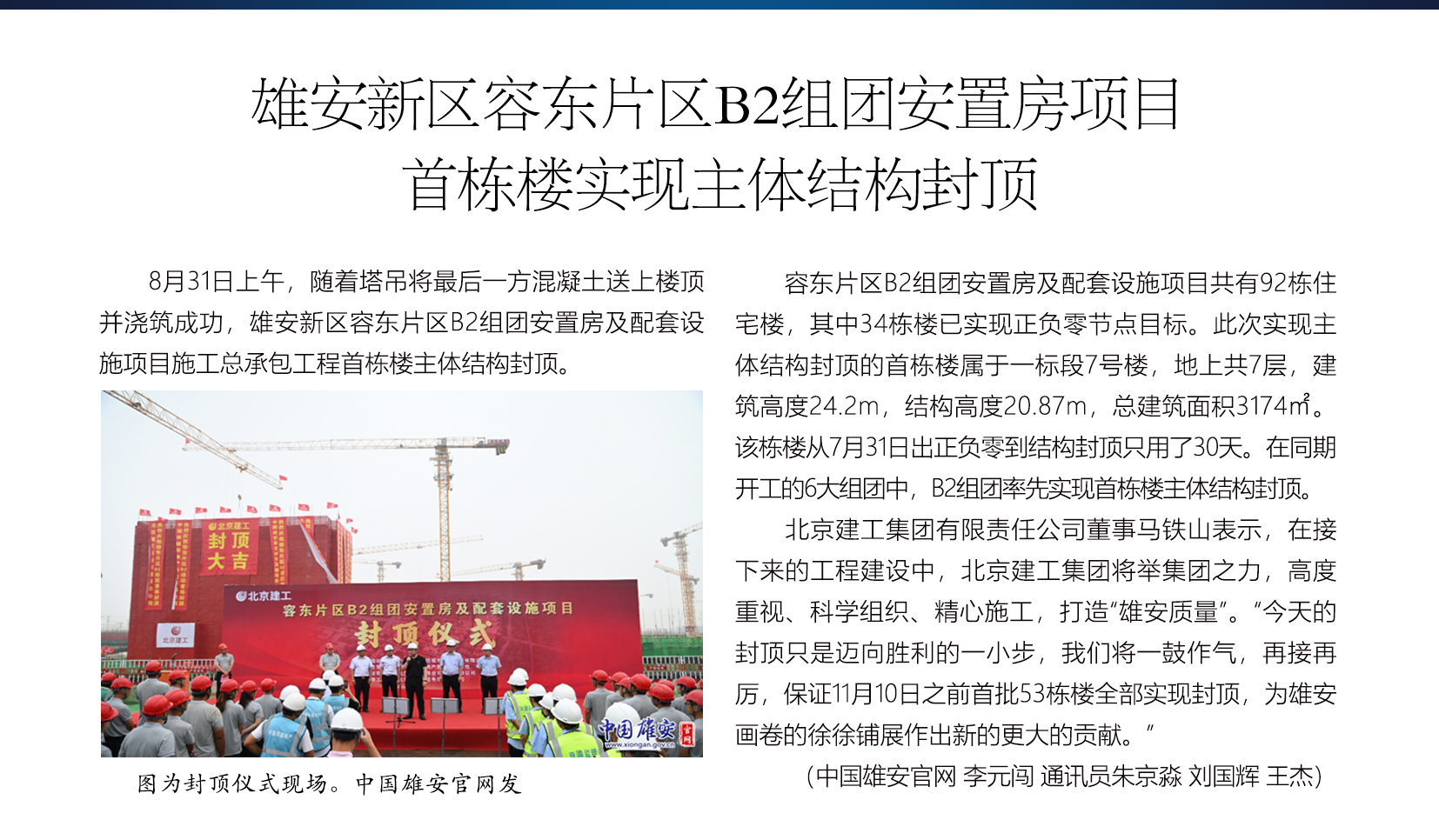 雄安新区容东片区B2组团安置房项目首栋楼实现主体结构封顶