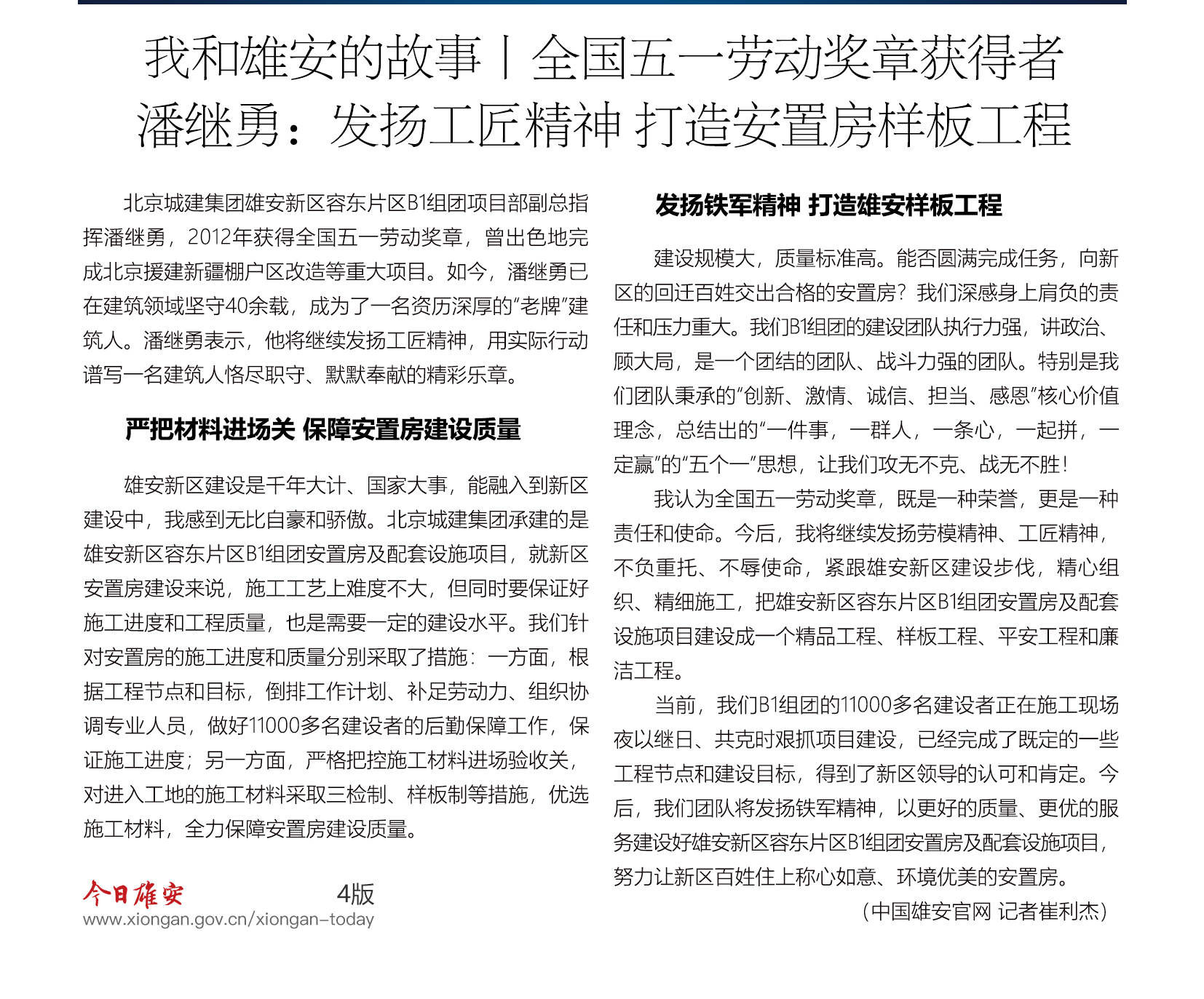 我和雄安的故事⑳丨全国五一劳动奖章获得者潘继勇:发扬工匠精神 打造安置房样板工程