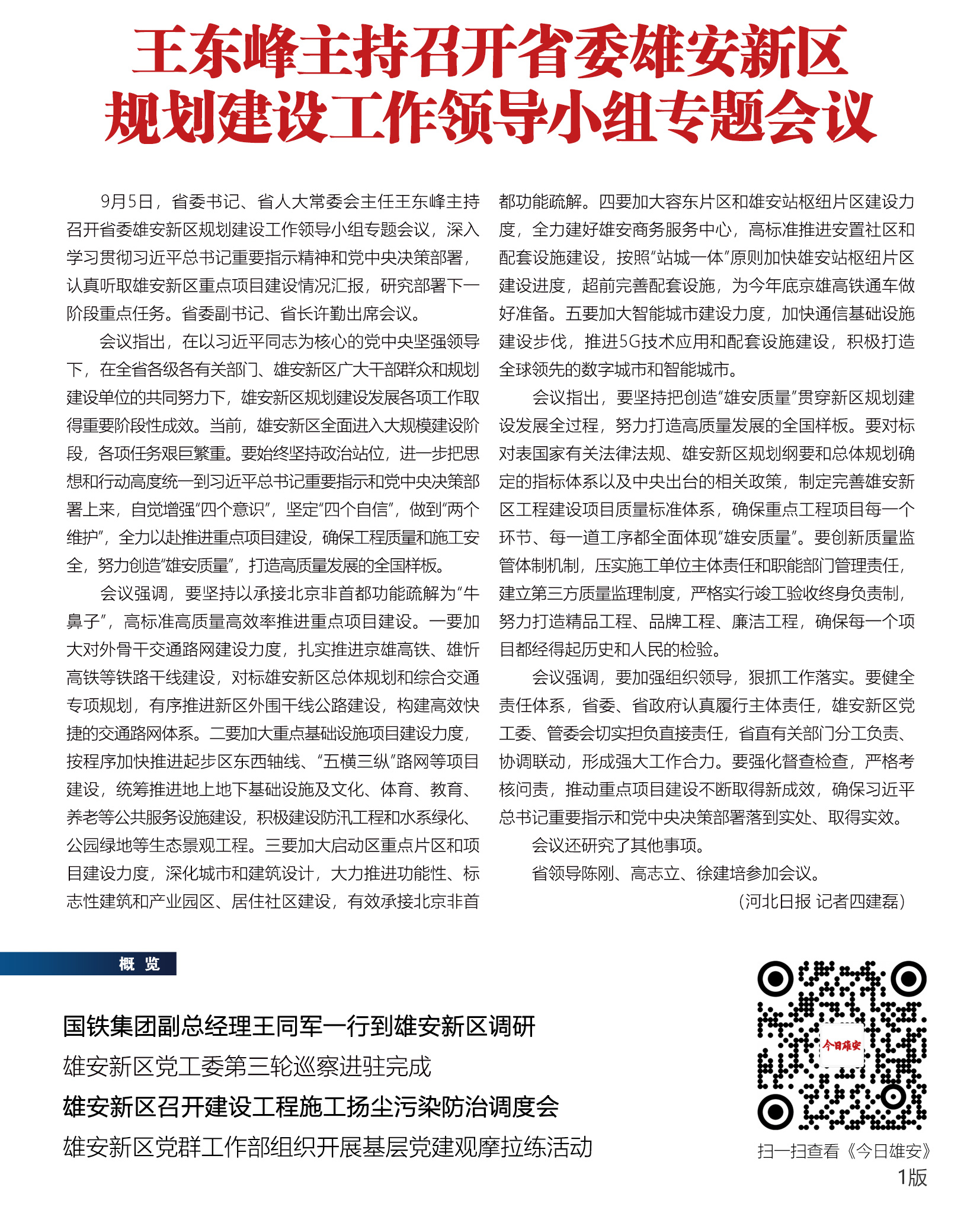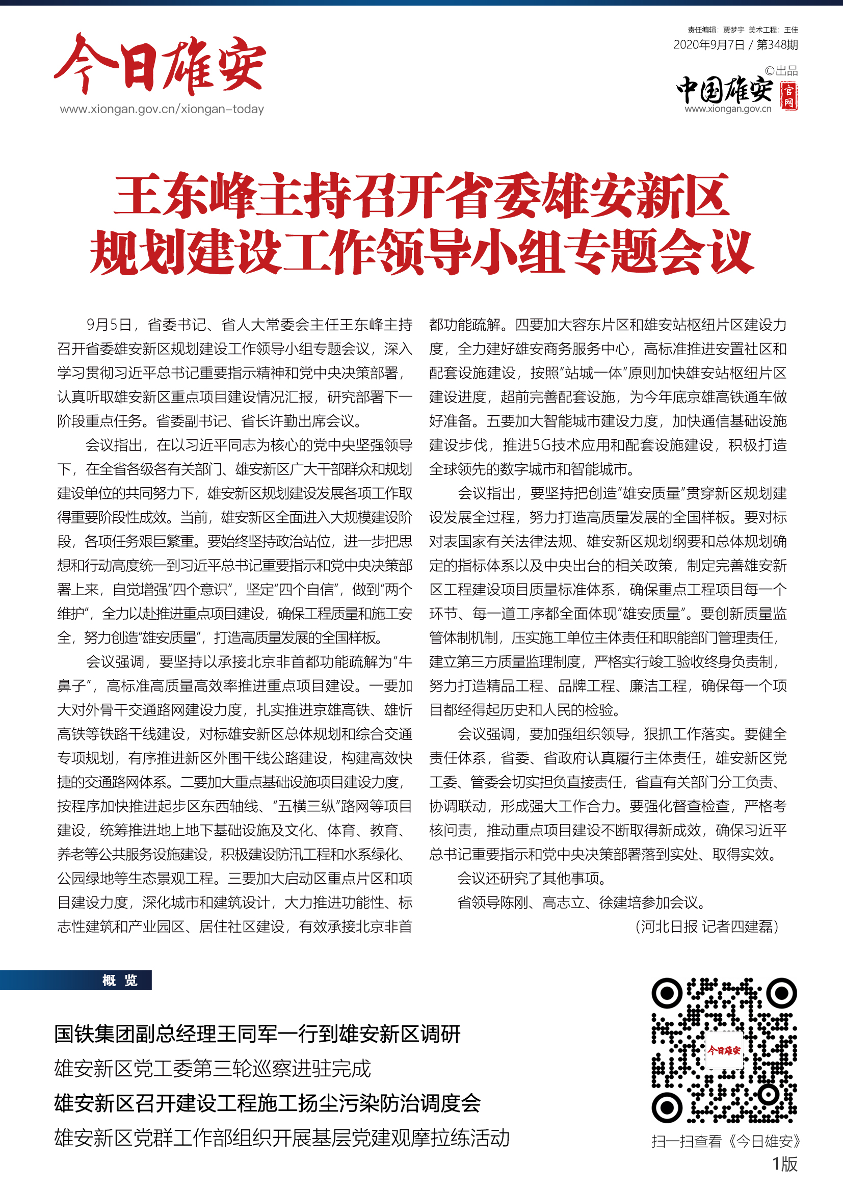 王东峰主持召开省委雄安新区规划建设工作领导小组专题会议