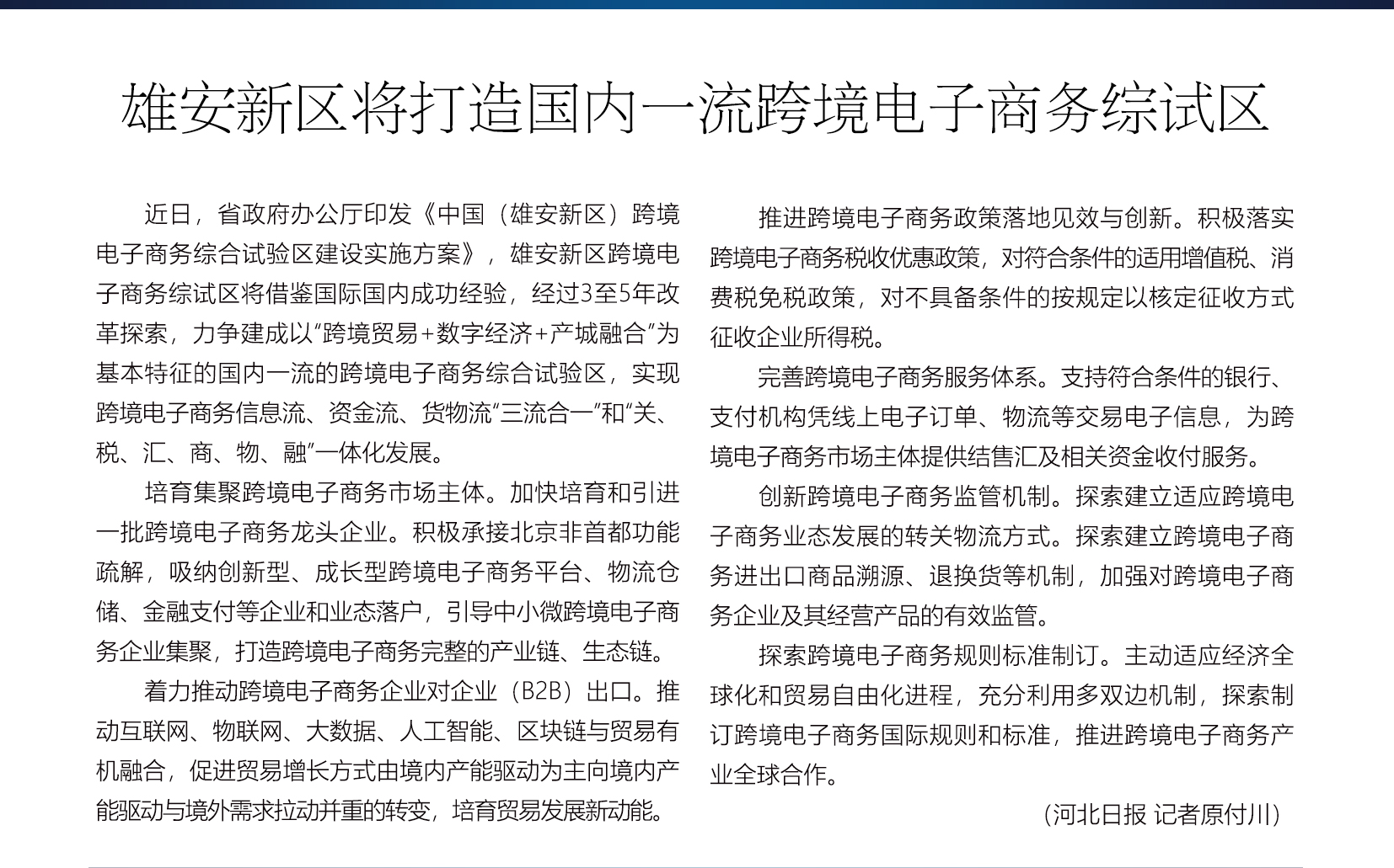 建设实施方案公布!雄安新区将打造国内一流跨境电子商务综试区