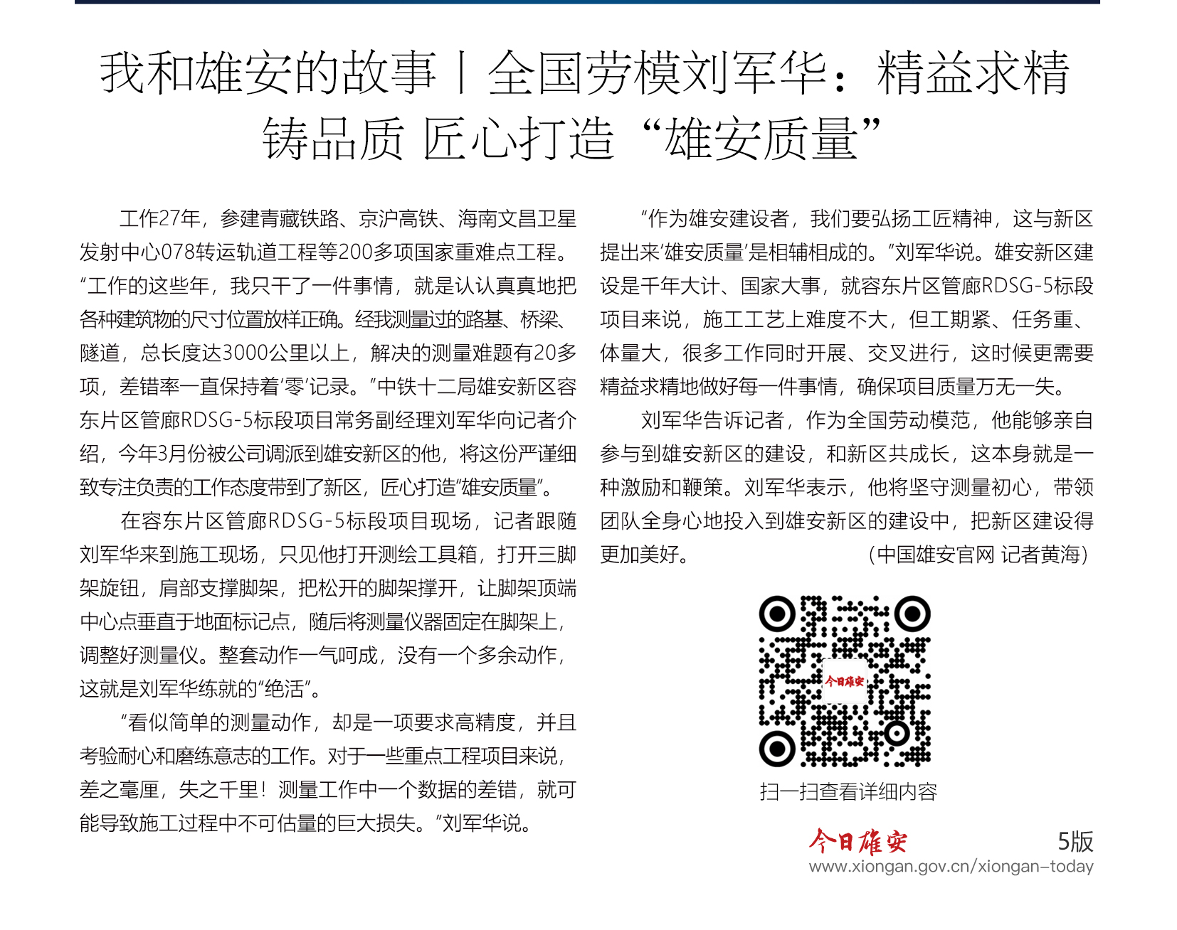 我和雄安的故事㉑丨全国劳模刘军华:精益求精铸品质 匠心打造“雄安质量”