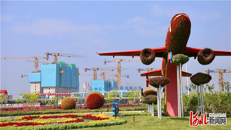 京廊交界、机场旁边,道路成网、树木成林,一簇簇的鲜花盛开在道路两侧,一辆辆重型卡车穿梭在各个工地间——这里是中国(河北)自由贸易试验区大兴机场片区廊坊区域的建设现场。