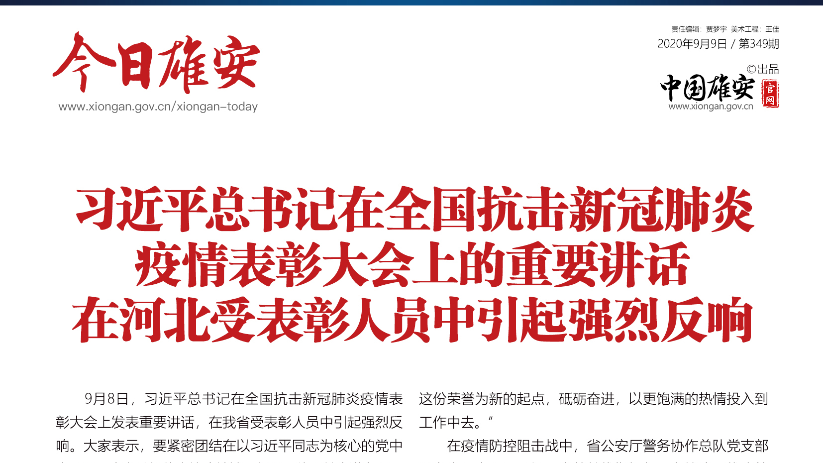 ——习近平总书记在全国抗击新冠肺炎疫情表彰大会上的重要讲话引起雄安新区干部群众强烈反响