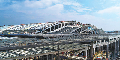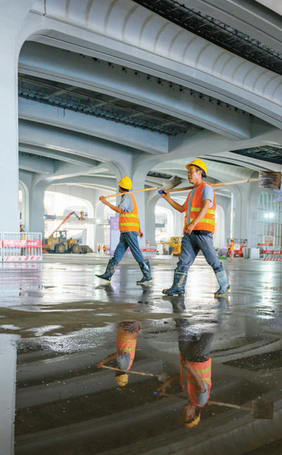 9月5日,工人在雄安高铁站建设施工。人民视觉