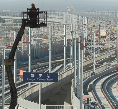 2020年8月17日,我国智能高铁的“新标杆”——京雄城际铁路全线轨道贯通,雄安高铁站、容东片区安置房及配套设施项目等工程建设如火如荼。9月10日上午,京雄城际大兴机场至雄安段接触网送电成功,标志着京雄城际全线接触网贯通,即将进入联调联试阶段。可喜的变化时刻都在这片热土上发生。当前,来自四面八方的建设者、创业者和当地干部群众一起,为将新区打造成高质量发展的“样板之城”而拼搏奋斗。数以万计的建设者正披星戴月,日夜奋战在雄安新区建设现场,责任扛在肩,使命勇担当,他们用工匠精神,践行着“世界眼光、国际标准、中国特色、高点定位”的建设标准,一丝不苟为雄安建设添砖加瓦。