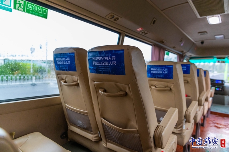 公交车座椅背部贴上了网络安全宣传海报。中国雄安官网记者高盟 摄