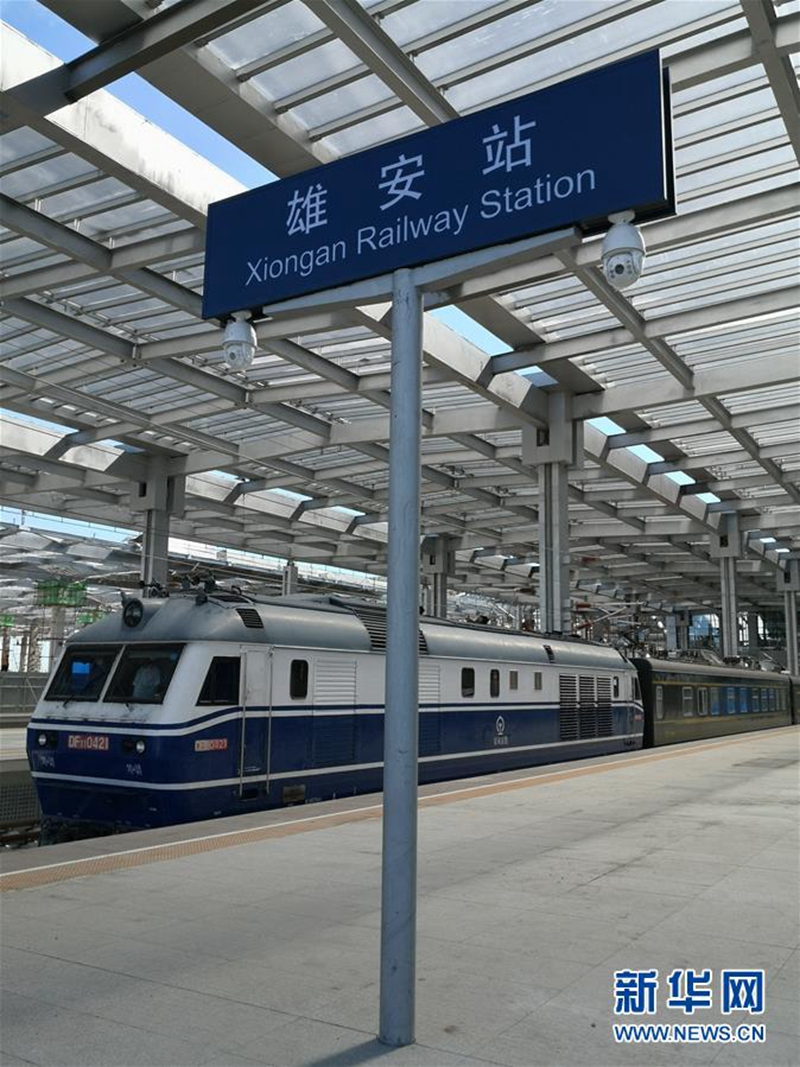 9月16日,从北京大兴机场站始发的55001次首趟动态检测车抵达雄安站(手机照片)。 新华社记者 曹国厂 摄