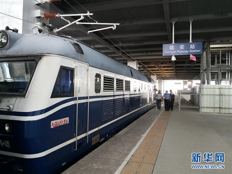 9月16日,从北京大兴机场站始发的55001次首趟动态检测车抵达雄安站(手机照片)。新华社记者 曹国厂 摄