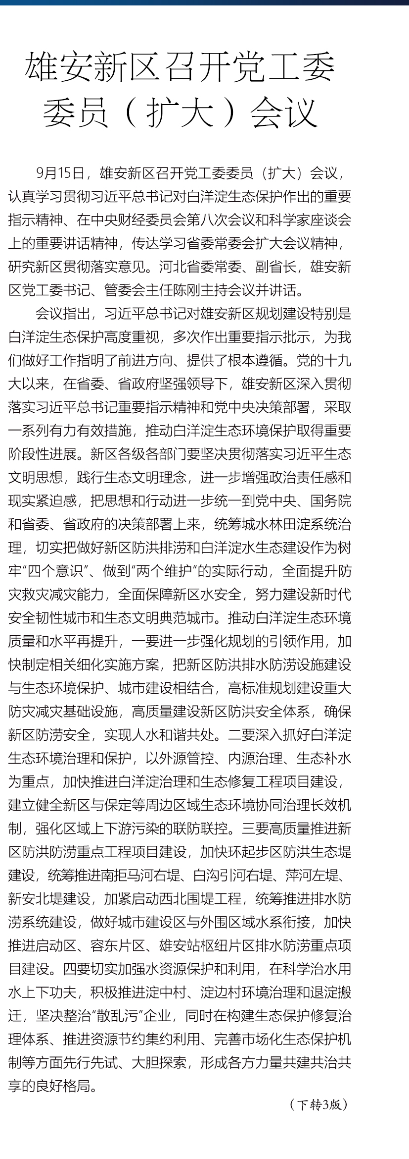 要深入学习贯彻习近平总书记重要指示精神,全力推进白洋淀生态环境治理再上新台阶。