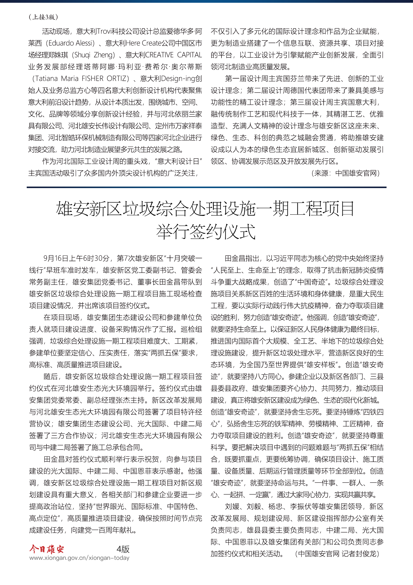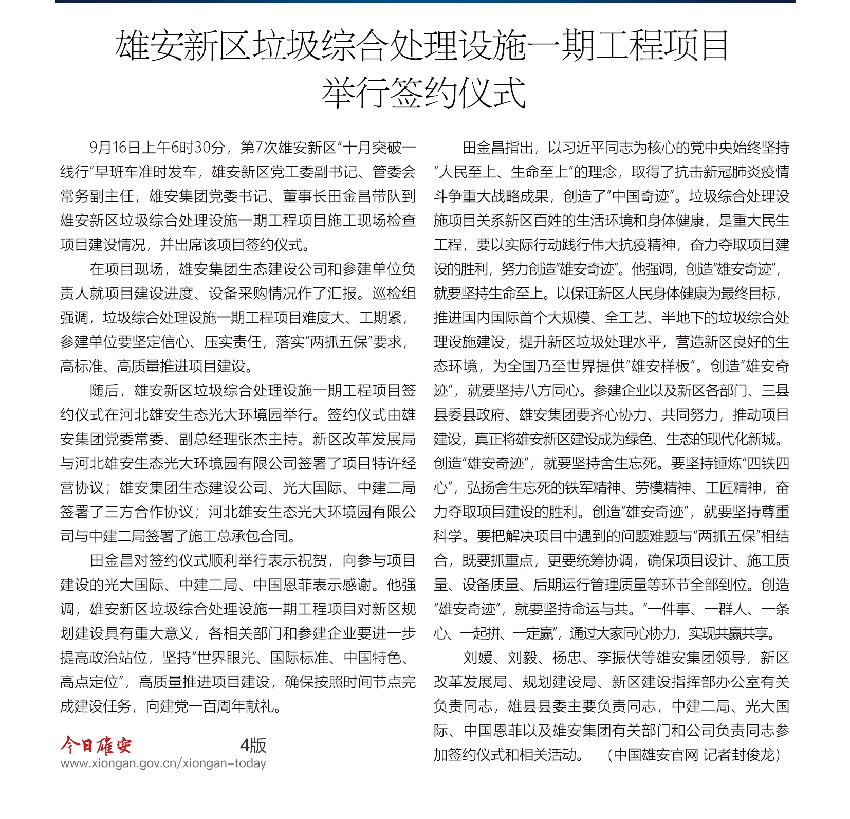 雄安新区垃圾综合处理设施一期工程项目举行签约仪式