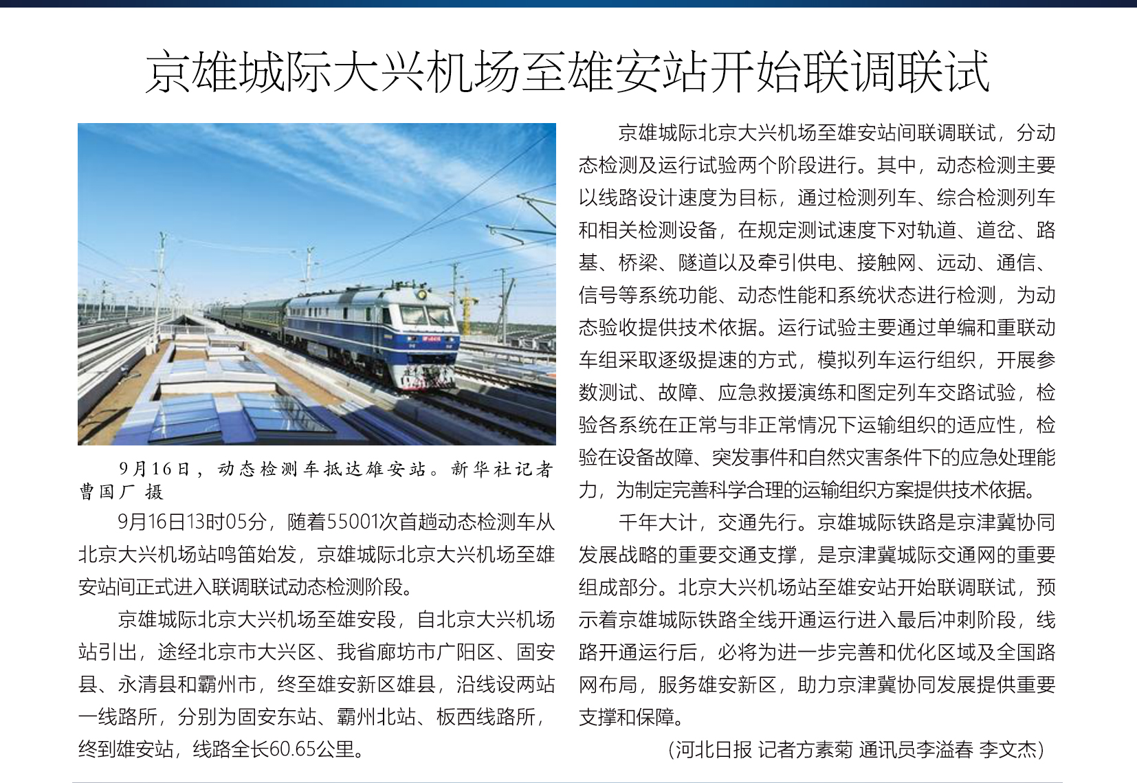 图集丨京雄城际联调联试 首趟动态检测车上线开跑