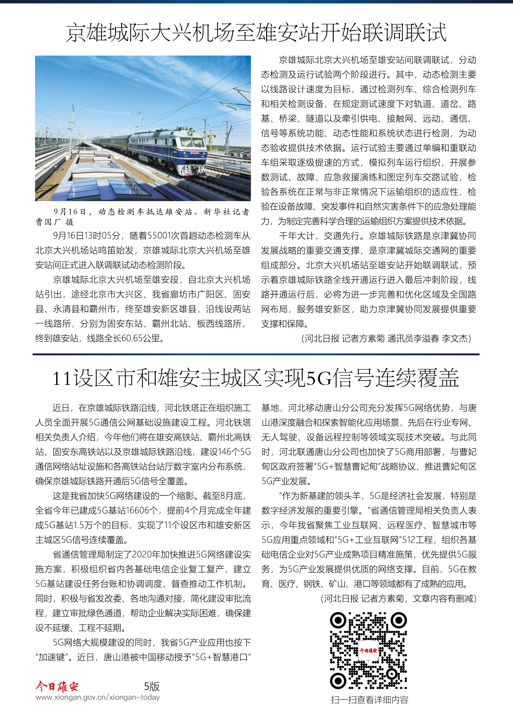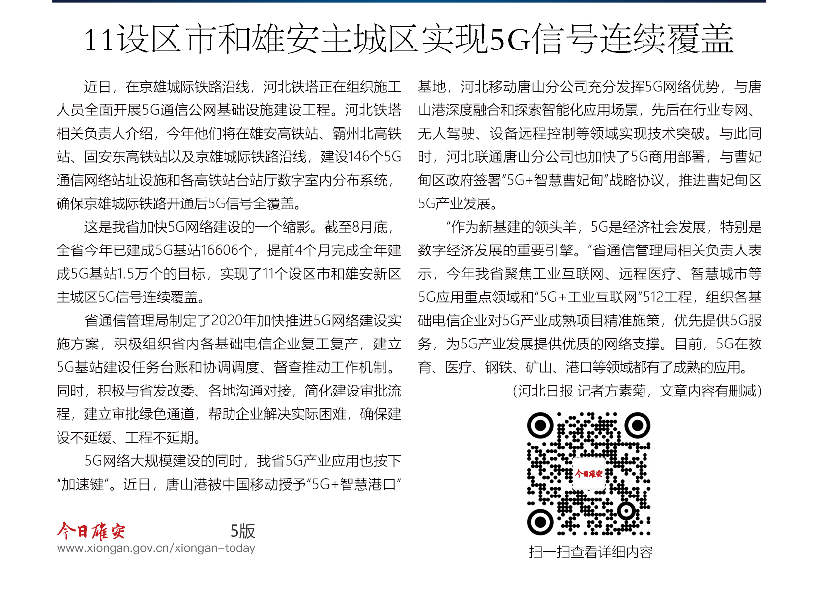 截至8月底,全省今年已建成5G基站16606个,提前4个月完成全年建成5G基站1.5万个的目标,实现了11个设区市和雄安新区主城区5G信号连续覆盖。