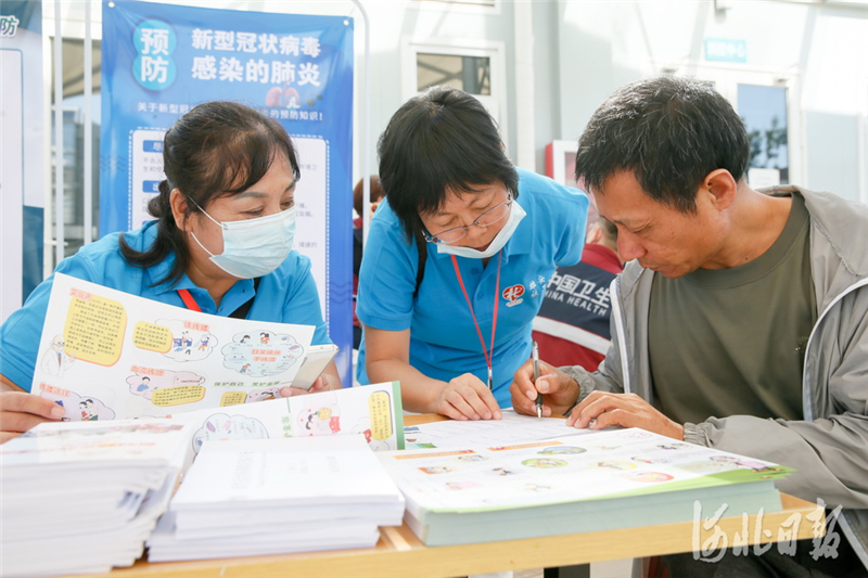 9月18日,雄安新区容东片区,工作人员向广大劳动者系统介绍健康知识。河北日报记者赵杰 摄