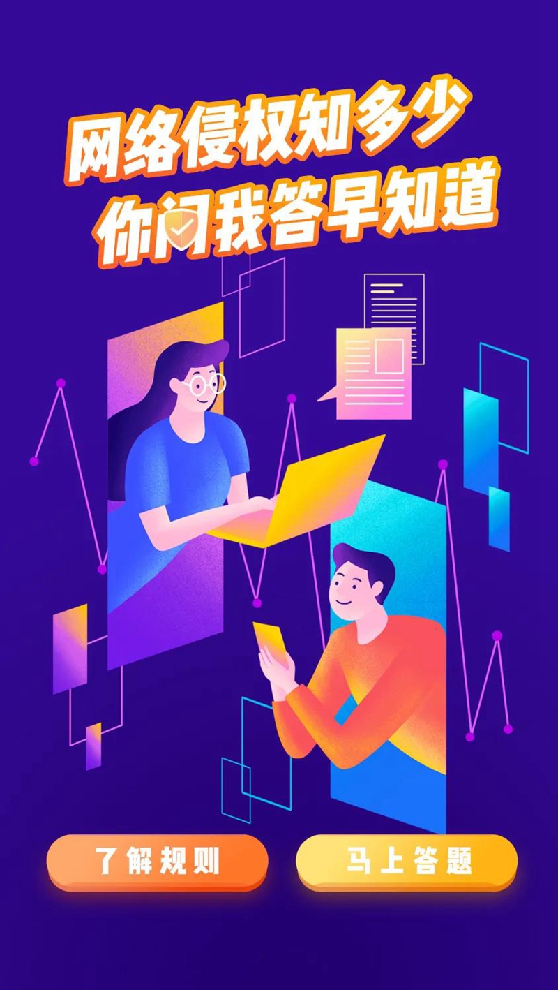 这是一款寓教于乐的“网络侵权信息知多少”在线答题游戏。您可以在游戏中了解网络侵权的相关知识,提高共建网络文明的参与度。