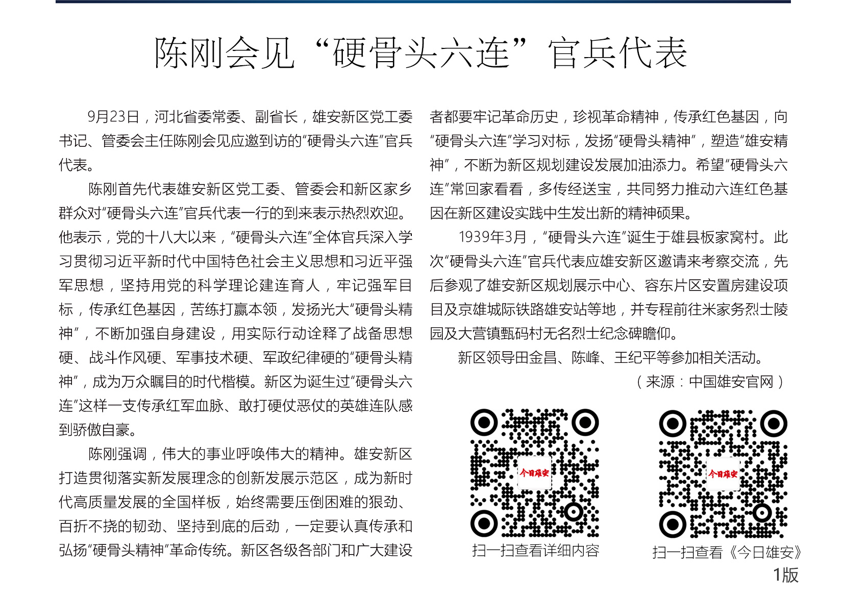 坚持传承弘扬“硬骨头精神”,为雄安新区建设发展加油添力。