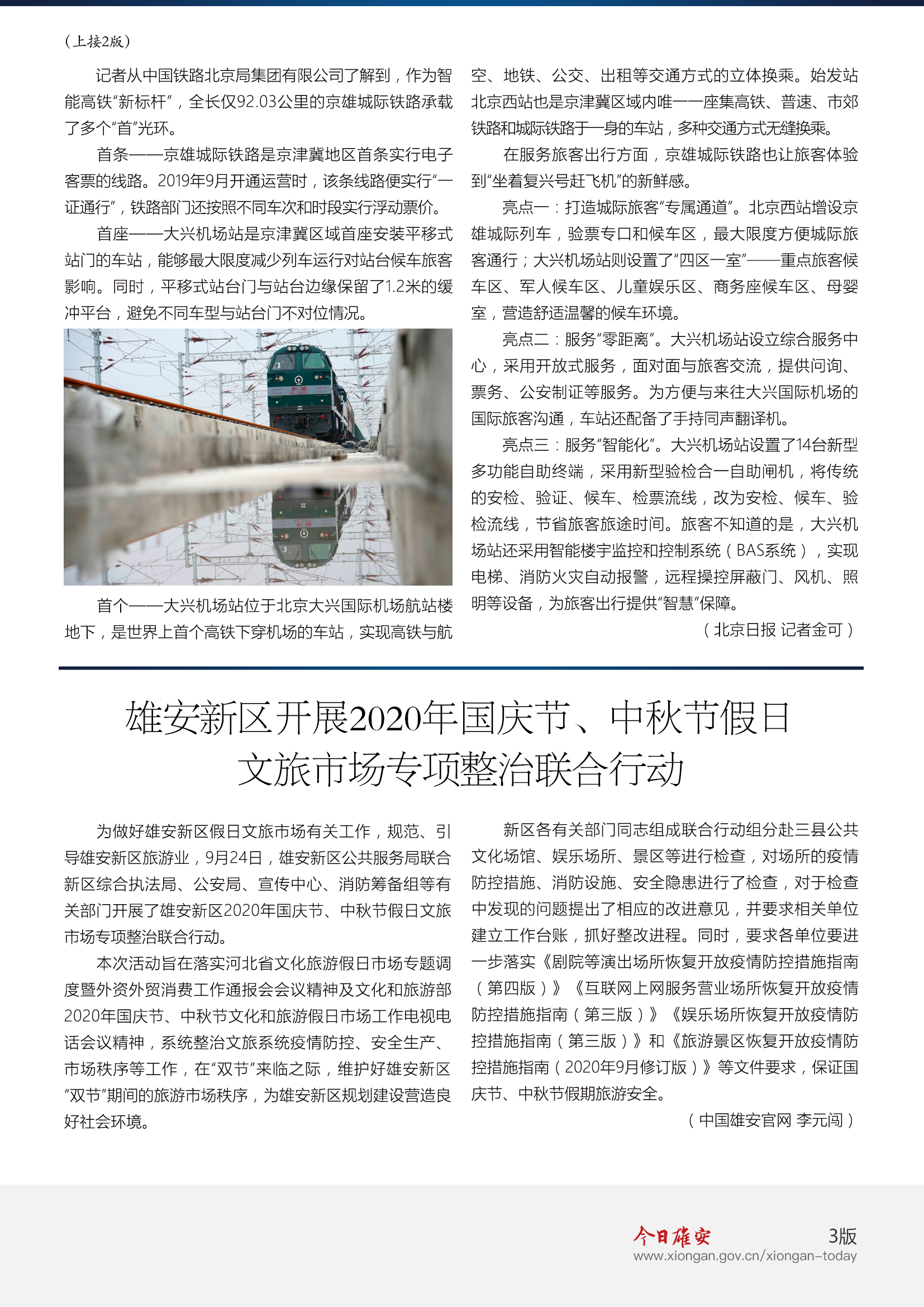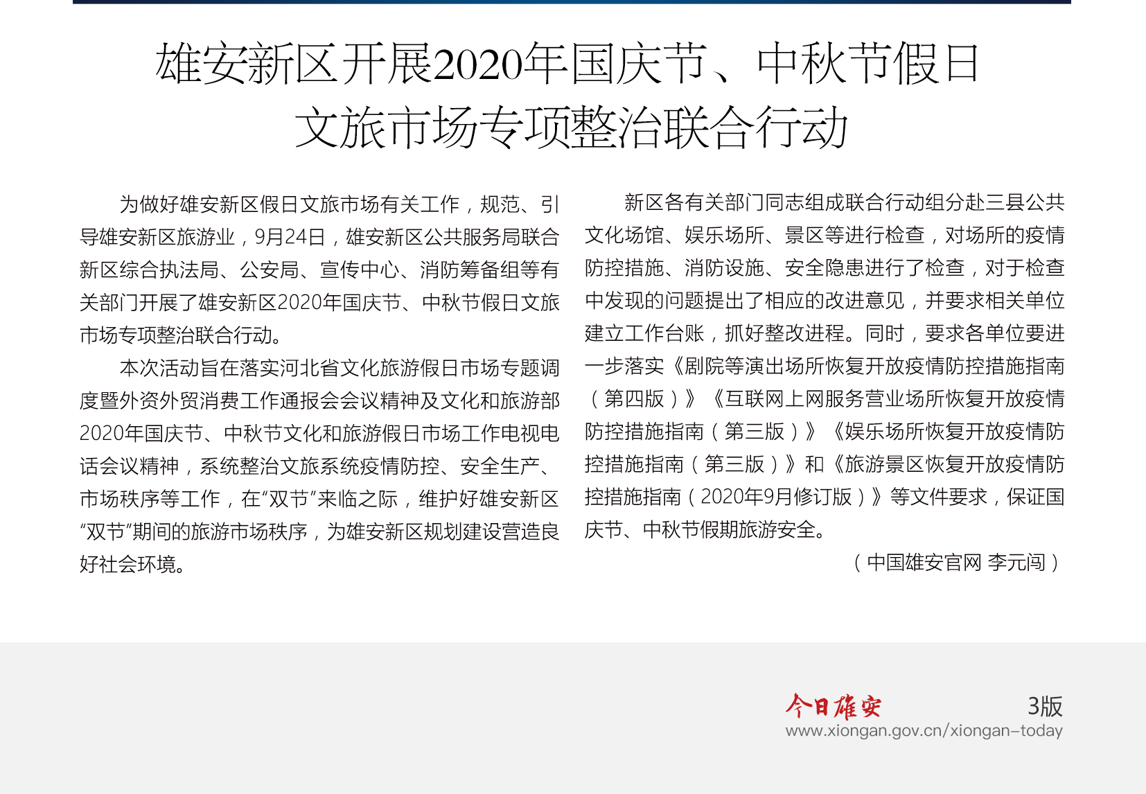 雄安新区开展2020年国庆节、中秋节假日文旅市场专项整治联合行动