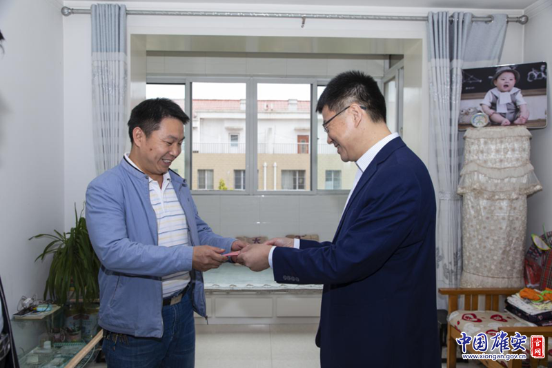 陈峰为“安新好人”张伟送上慰问金。中国雄安官网记者牛思佳 摄