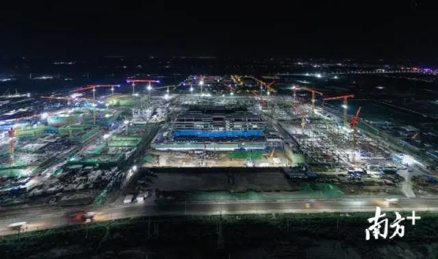 夜晚的容东片区灯火通明,工人们不舍昼夜加快新区建设。